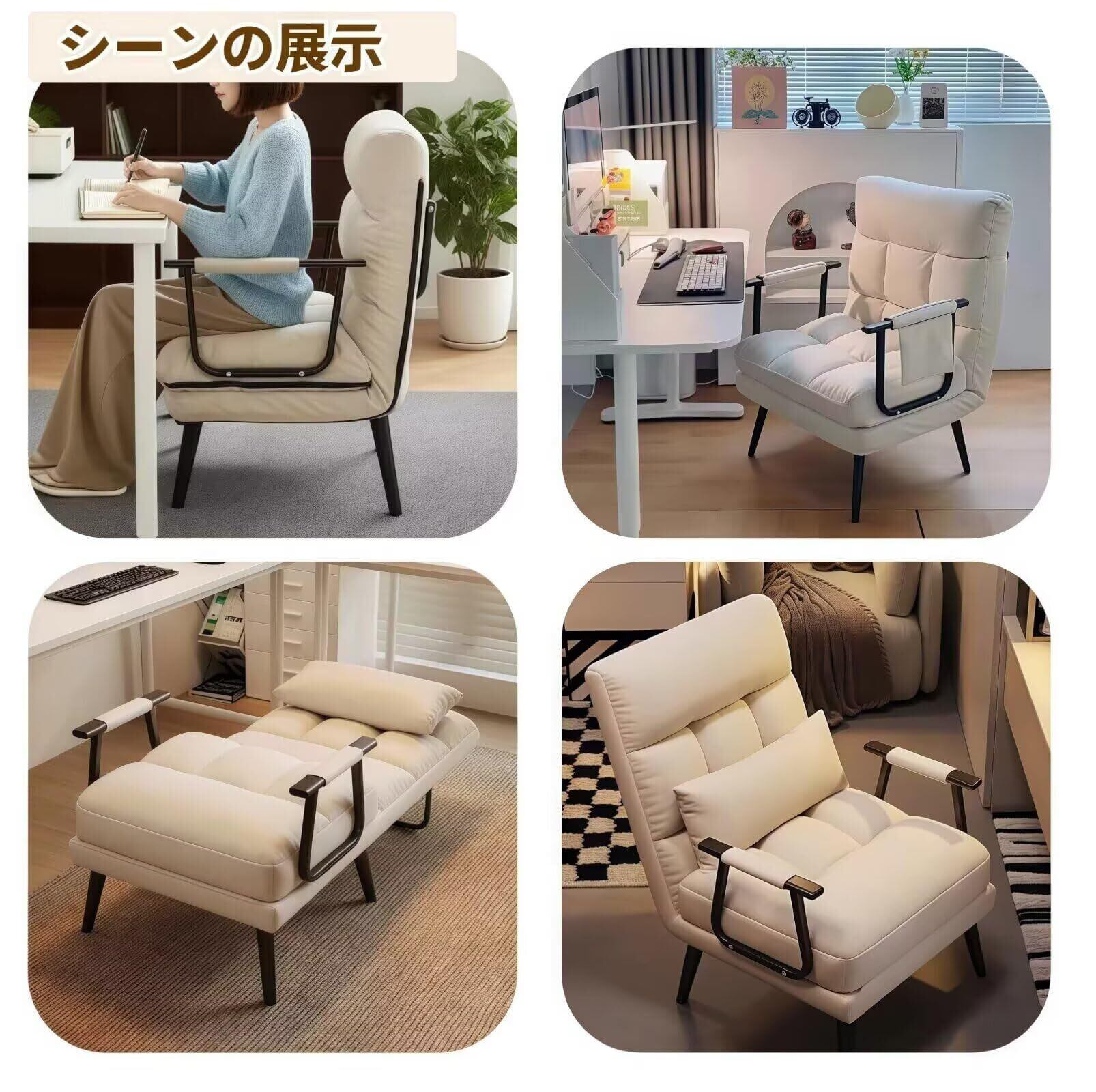 【人気商品】ソファーベッド 折り畳み カウチソファー 幅65cm 1人掛け 多機能 3ウェイソファ 5段階調節可能 人間工学 クッション付き コンパクト お洒落 座り心地良い 簡単装着 客間 寝室 家庭用 日本語説明書付き(ホワイト,65x65x98.5cm)
