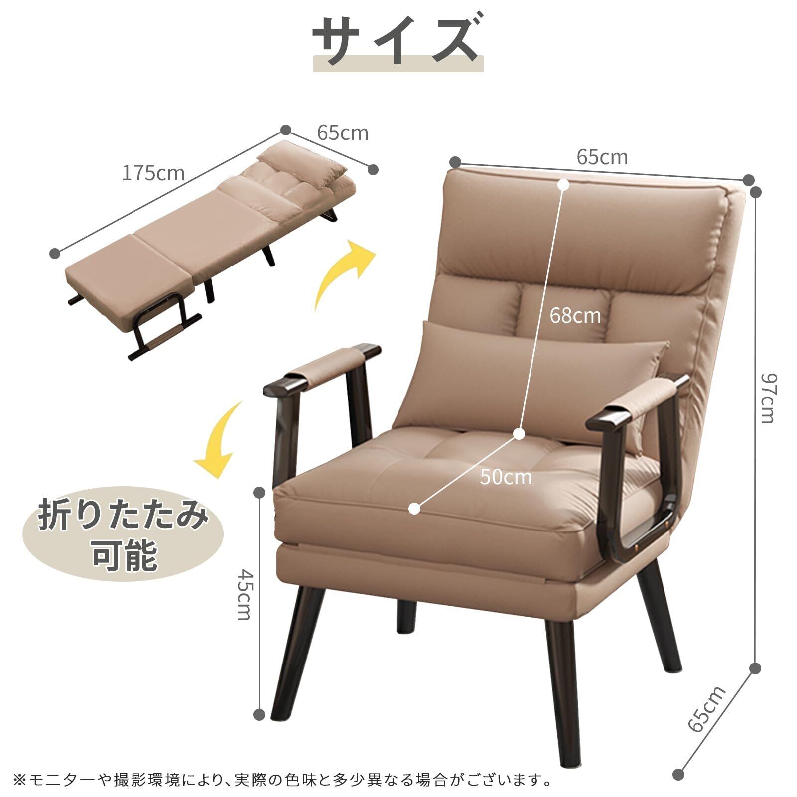 【2025年新登場】ソファーベッド 折りたたみソファー 1人掛け リクライニング シングル コンパクト 幅65cm レザー調 洗えるカバー おしゃれ 一人暮らし用 カーキ