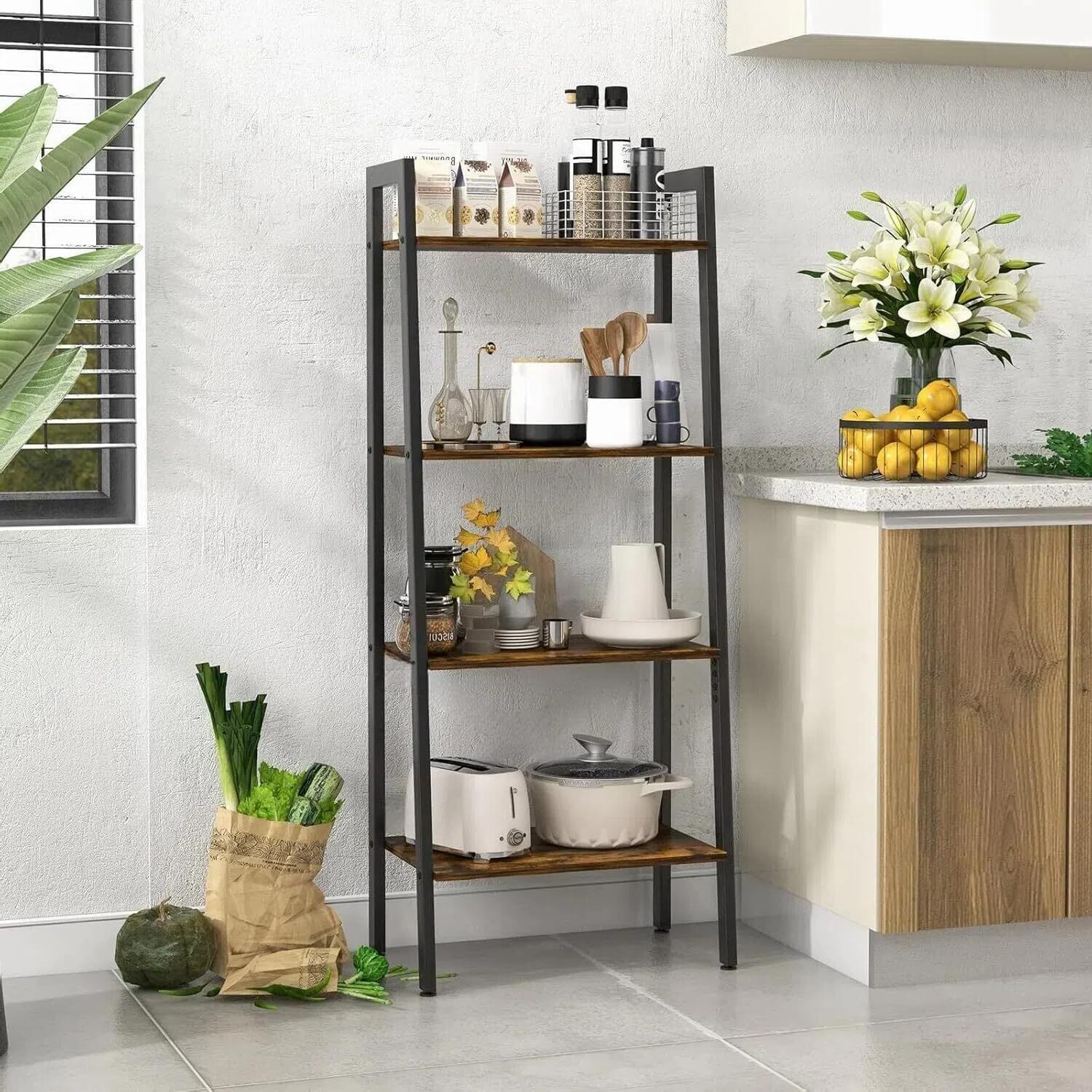 4段木製本棚 ラック 棚 本棚 おしゃれ キッチンラック オープンラック 収納ラック 組立簡単 [並行輸入品]