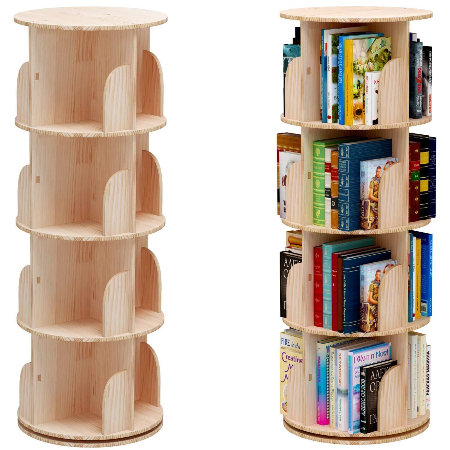 【360度回転ディスプレイ本棚】: この天然松材回転本棚は、底部にサイレントベアリングターンテーブルが装備されており、回転中に揺れがなく、本棚全体が360度回転でき、必要な本を簡単に手に入れることができます。歩き回らずに