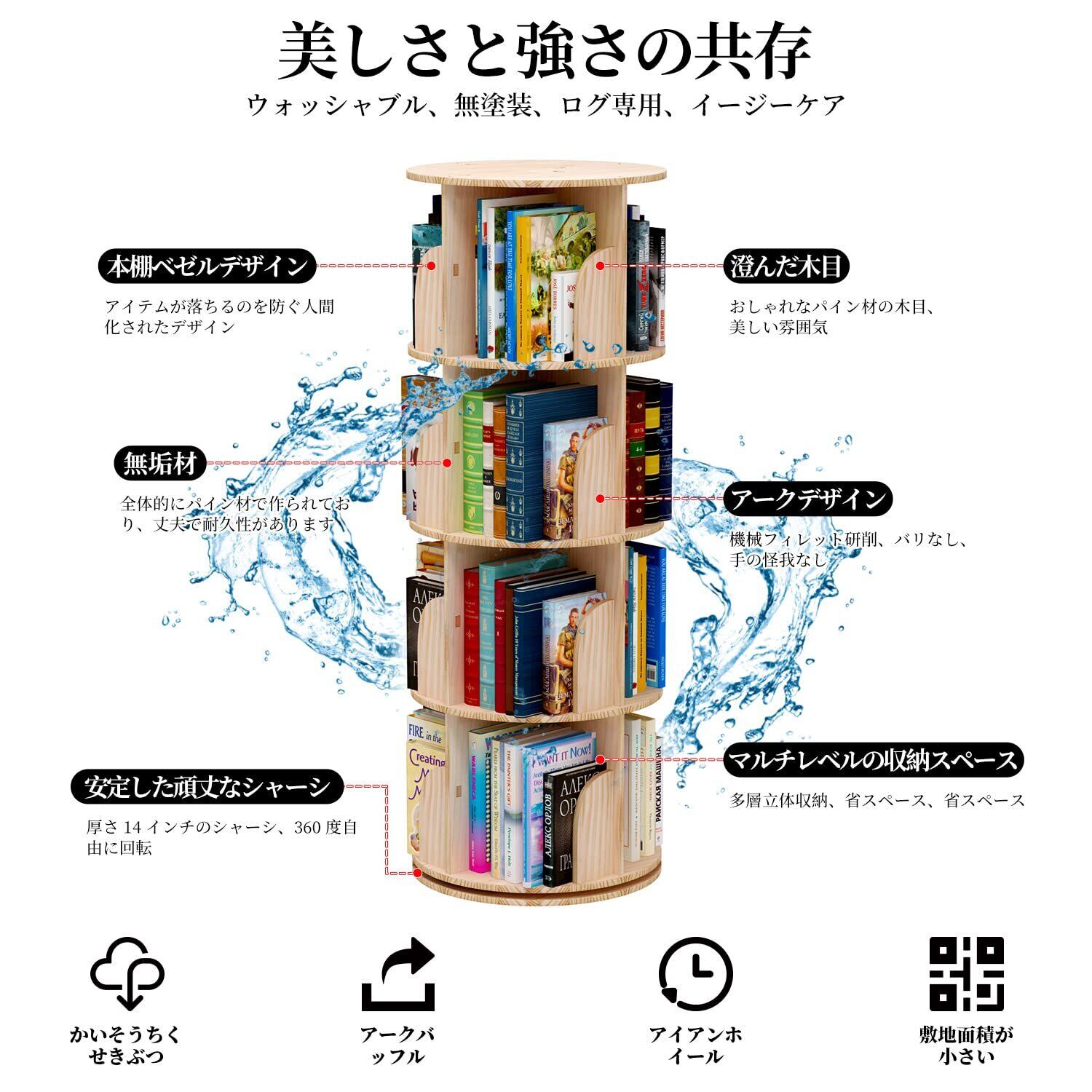 【新着商品】本棚 (回転式本棚) 絵本棚 天然木 漫画 ブックシェルフ (4段)