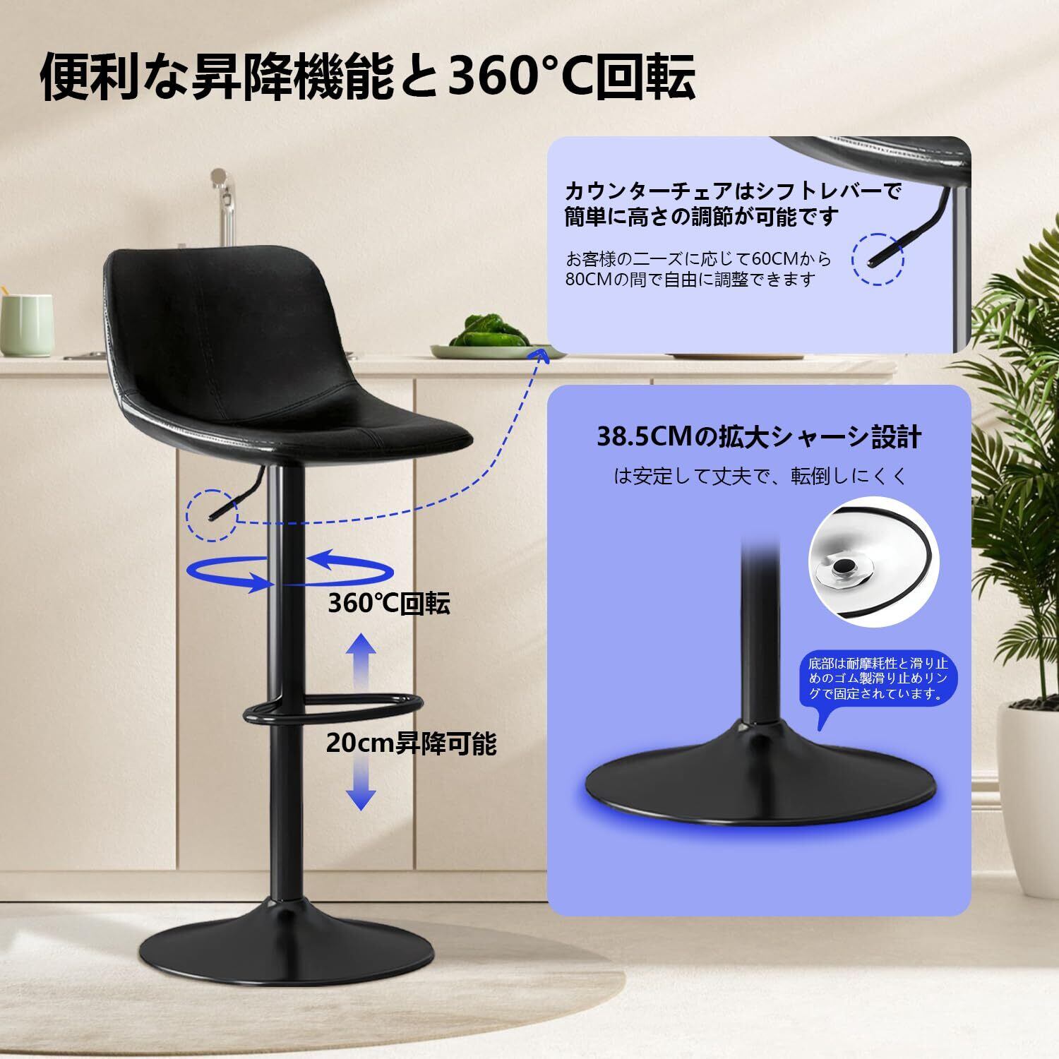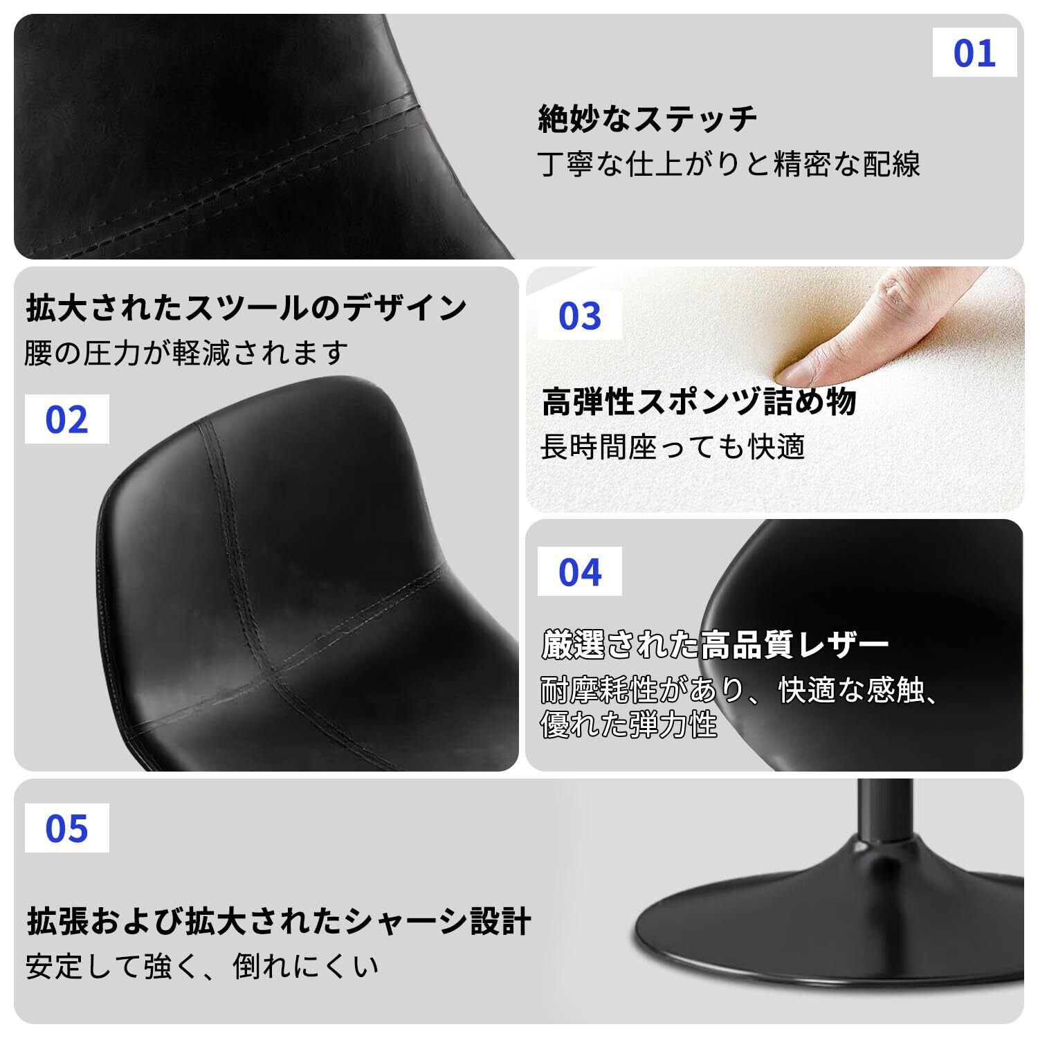【耐久性と安定性】回転昇降バースツールの金属フレームは、製品寿命、頑丈さと安定性をします。 人間工学に基づいた背もたれ、背骨のラインにフィットして疲れを軽減します。それに、追加されたフットレストは、足の疲労を軽減し、快適でしっかりしています。頑丈な大型の鋼ベース台座が採用しています。安定して丈夫で、転倒やつまづきの心配がなく安心してご使用いただけます。