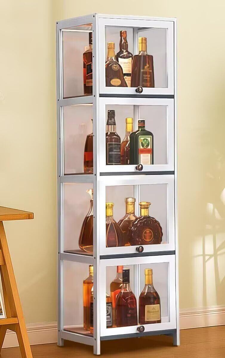 ウイスキー棚 ワインバーキャビネット 4段 密閉型/防塵型 幅40*奥行き32*高さ140.3cm 酒棚 ワインラック 酒類貯蔵ロッカー 透明アクリル お酒 収納 ウイスキーラック 落下防止 おしゃれ リビングルーム ダイニングルーム用 日本語説明書付き(ホワイト)