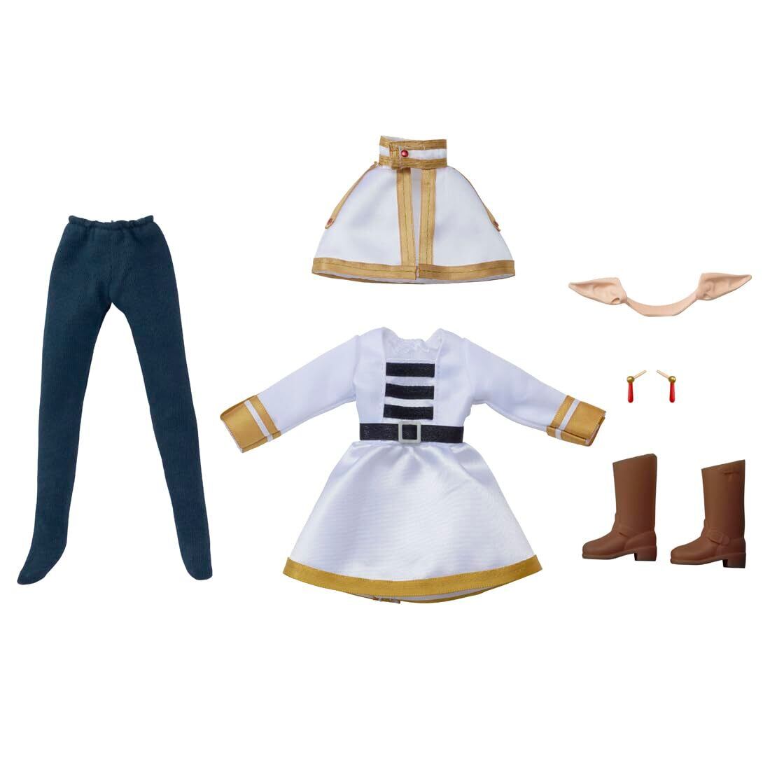 【セット内容】人形(ドレス、下着着用)(1),タイツ(1),クツ(1),フリーレン耳パーツ(1),耳飾り(1),