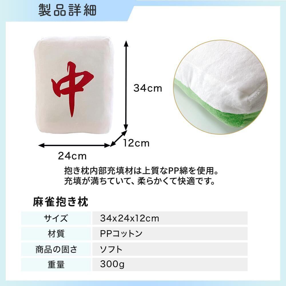 ふわふわで癒される!麻雀牌クッションです。 誕生日プレゼント、クリスマスギフト、バレンタイン、ホワイトデーなど、特別な日の麻雀好きのお友達への贈り物にぴったりです。 手洗い可能なので、汚れても簡単にお手入れできます。いつでも清潔&ふわふわの状態をキープ! 【こんな方におすすめ】 かわいいぬいぐるみクッションを探している方 抱き枕やクッションとしても使いたい方 インテリアにもなるおしゃれなデザインが欲しい方 プレゼントに喜ばれるアイテムをお探しの方