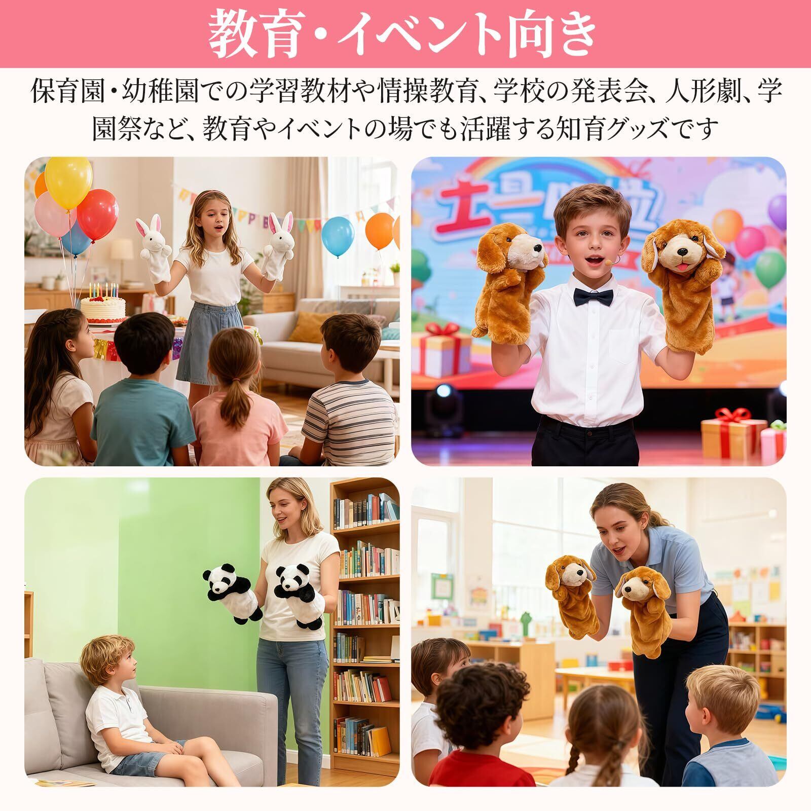 【教育・イベント向き】保育園・幼稚園での学習教材や情操教育、学校の発表会、人形劇、学園祭など、教育やイベントの場でも活躍する知育グッズです。