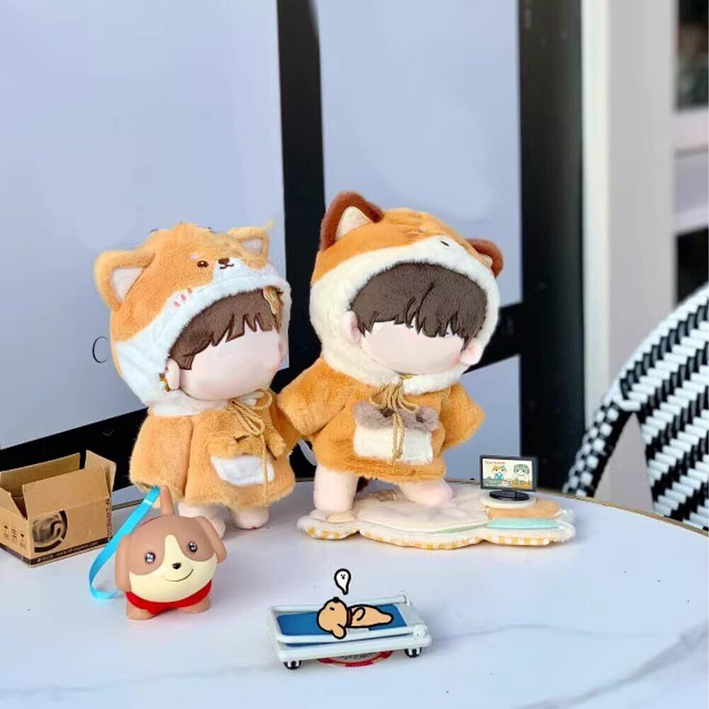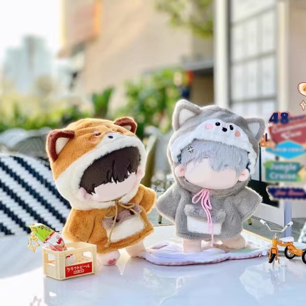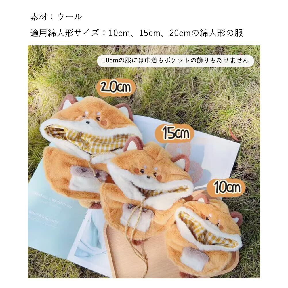 【新着商品】YUYAKESHI 綿人形の服 動物 人形用 人形服 着替え 上着 耳付き帽子 ぬいぐるみ用 きぐるみ かわいい アニマル ふわふわ マント(キツネ・15cm)