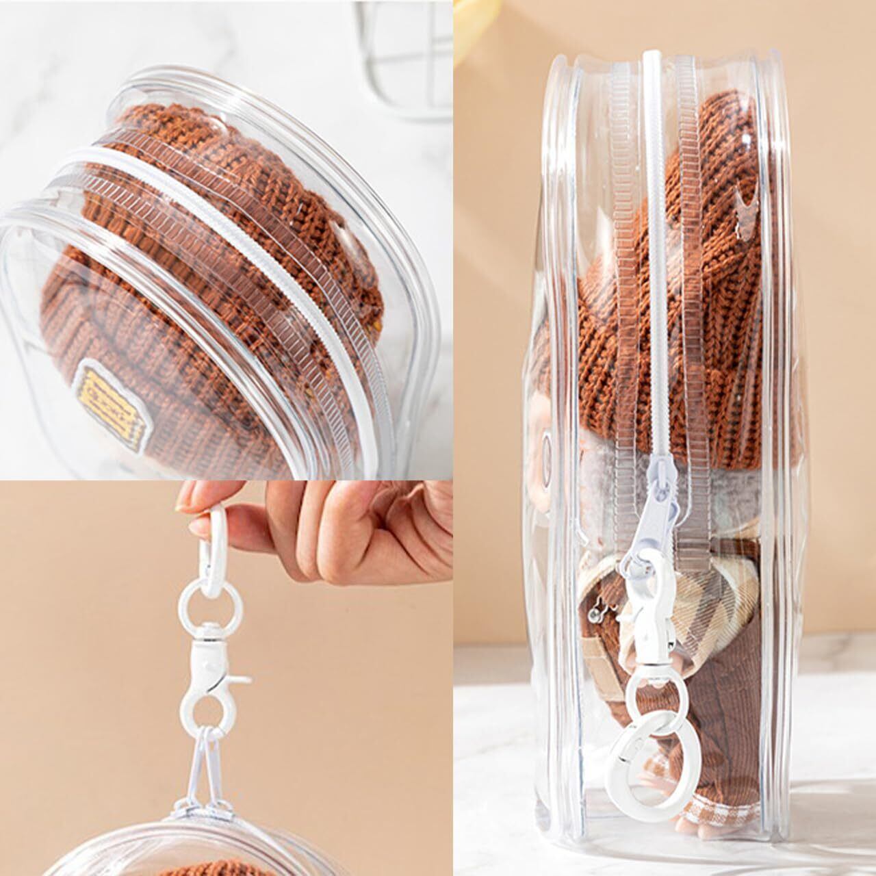 お気に入りにぬいぐるみをバッグにつけてお出かけができる透明ぬいポーチの2個セットです。カラフルなモコモコ綿球がランダムに入っています。ぬいぐるみや小物を可愛く収納できるアイテムです。サイズは195mm×105mm×50mmで、持ち運びに便利なキーチャーム付き。全8色のカラーバリエーションがあり、自分のスタイルに合わせて選べます。軽量で丈夫なデザインは、ぬいぐるみだけでなくコスメやアクセサリーの収納にも最適。透明素材なので中身が一目で分かり、実用性と可愛らしさを兼ね備えた便利なアイテムです。