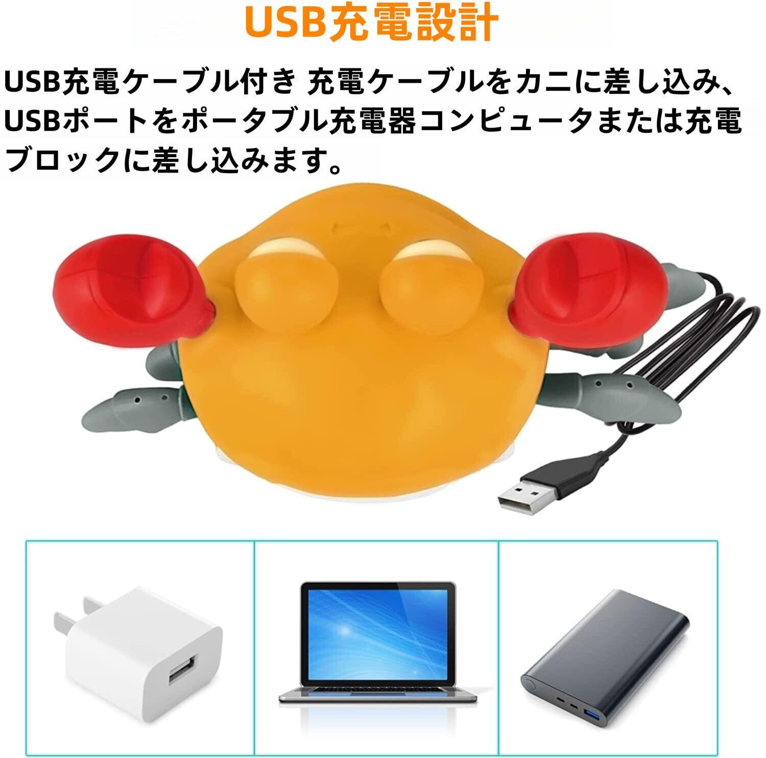 【USB充電】電子音楽カニおもちゃは3.7 Vリチウム電池で電力を供給し、2時間の充電時間は20〜30分の連続使用できます。USBケーブル付きで、USB充電器、パソコン、電源ボックスなどで充電するのはとても便利です。充電中におもちゃを閉じることを確認します。