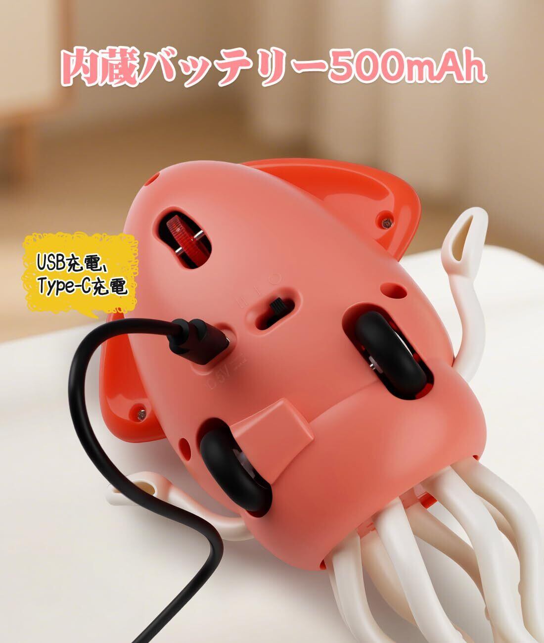 踊るタコおもちゃ 電動自動回避 ダンス LEDライト 踊る ダンシング イカ 動く 電動おもちゃ イカ USB充電式 SNSで話題 踊るタコ LEDライト&音楽付き 子供向けロボット 知育玩具 プレゼント (ピンク)