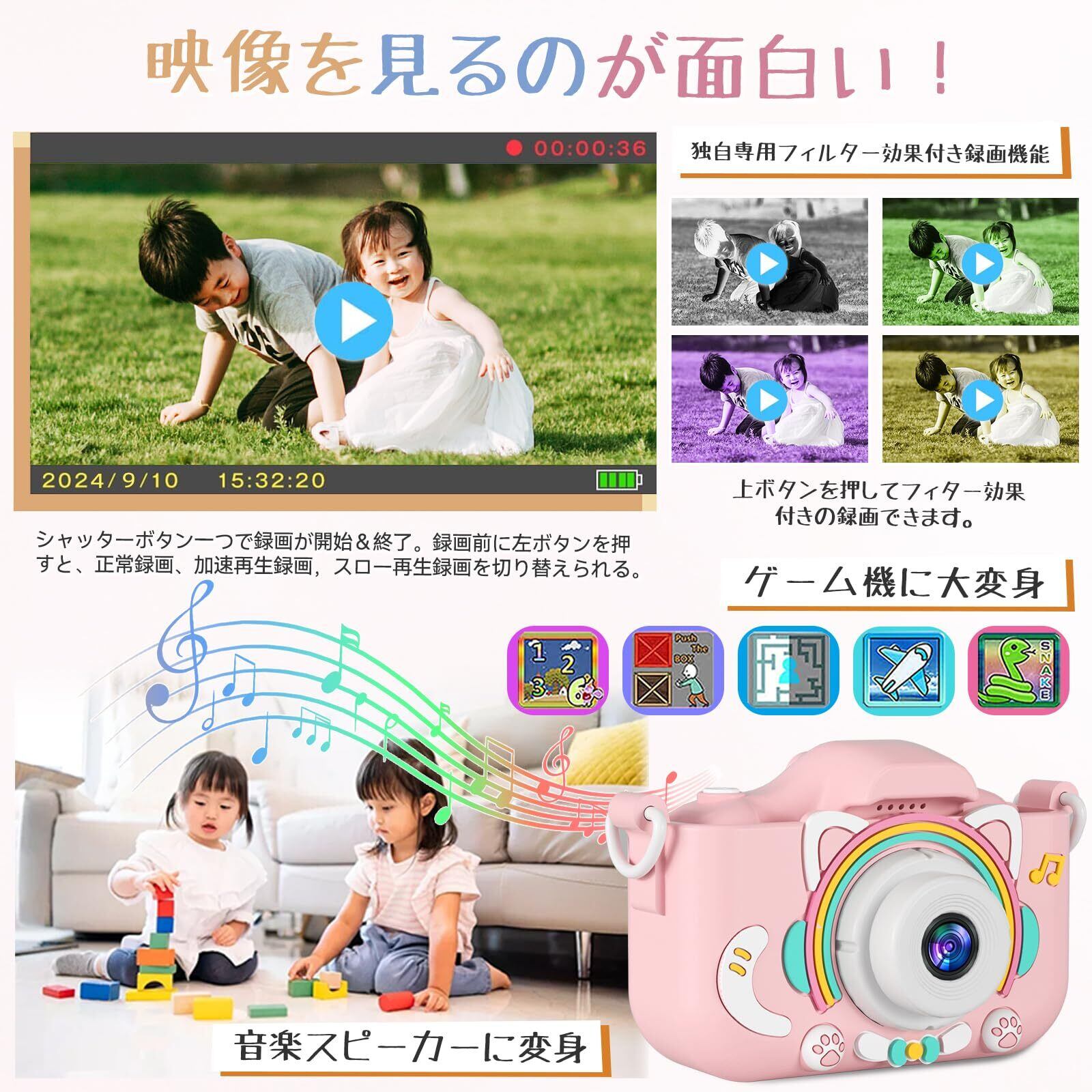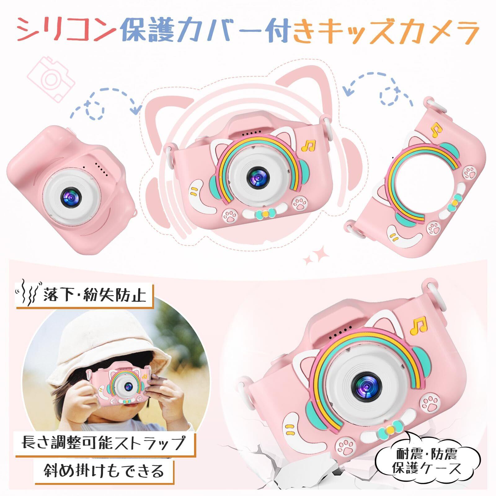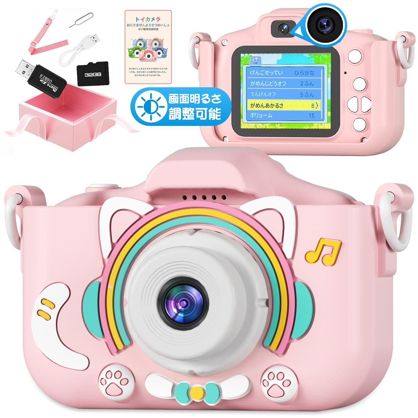 【2022最新】【視力保護】キッズカメラ トイカメラ 子供用カメラ 明るさ調整 ひらがな操作パネル&説明書 男の子 女の子 おもちゃ プレゼント シリコン保護ケース 4歳 5歳 6歳 7歳 8歳 子ども用 デジカメ 子供の日 クリスマス 誕生日プレゼント音楽プレーヤー ゲーム機能 データ転送可能 4800万画素 8倍ズーム 1080P 32GBsdカード 2.0インチIPS画面 800mAhバッテリー ネコ