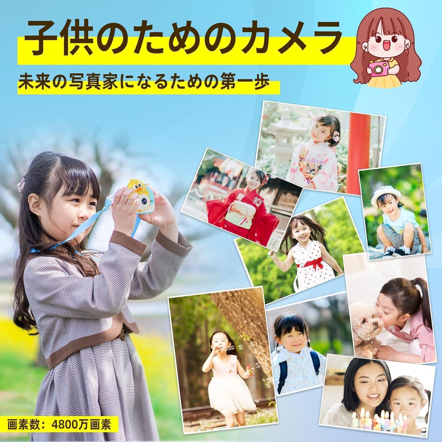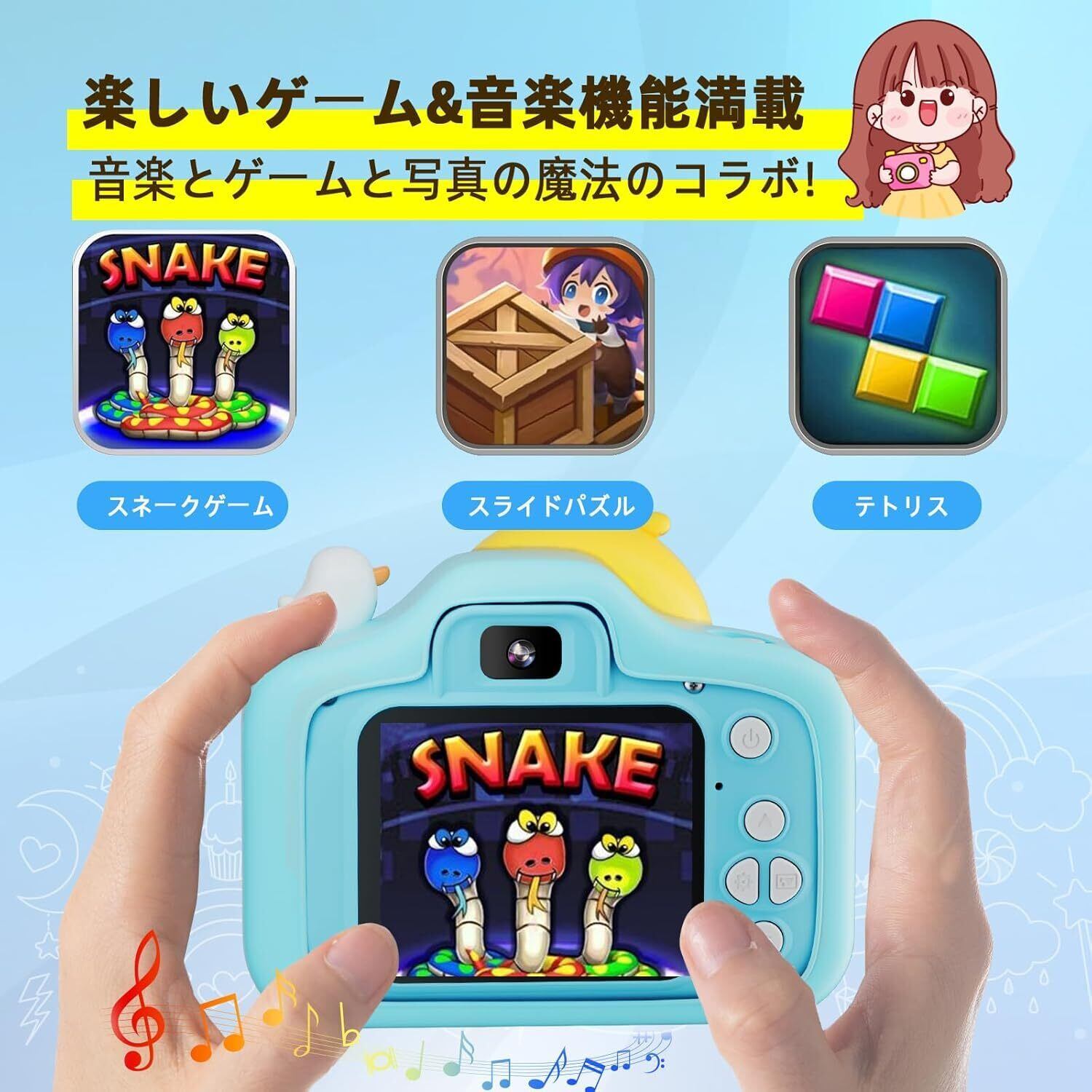 小さくて、かわいくて、操作が簡単:軽量で、小さくて、かわいいので、3~12歳の子どもでも疲れることなく持ち運べます。ワンボタンで操作できるので、3歳の子どもでも簡単に覚えられます。撮影した写真や動画は、液晶画面ですぐに見ることができます。