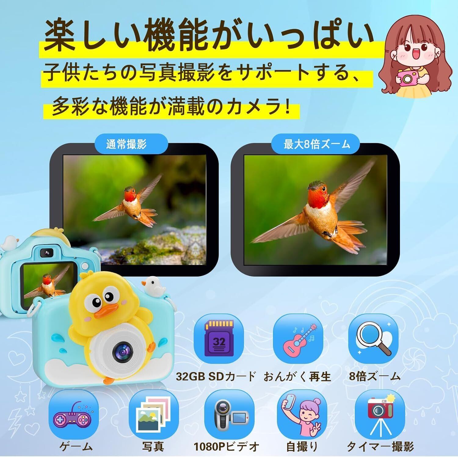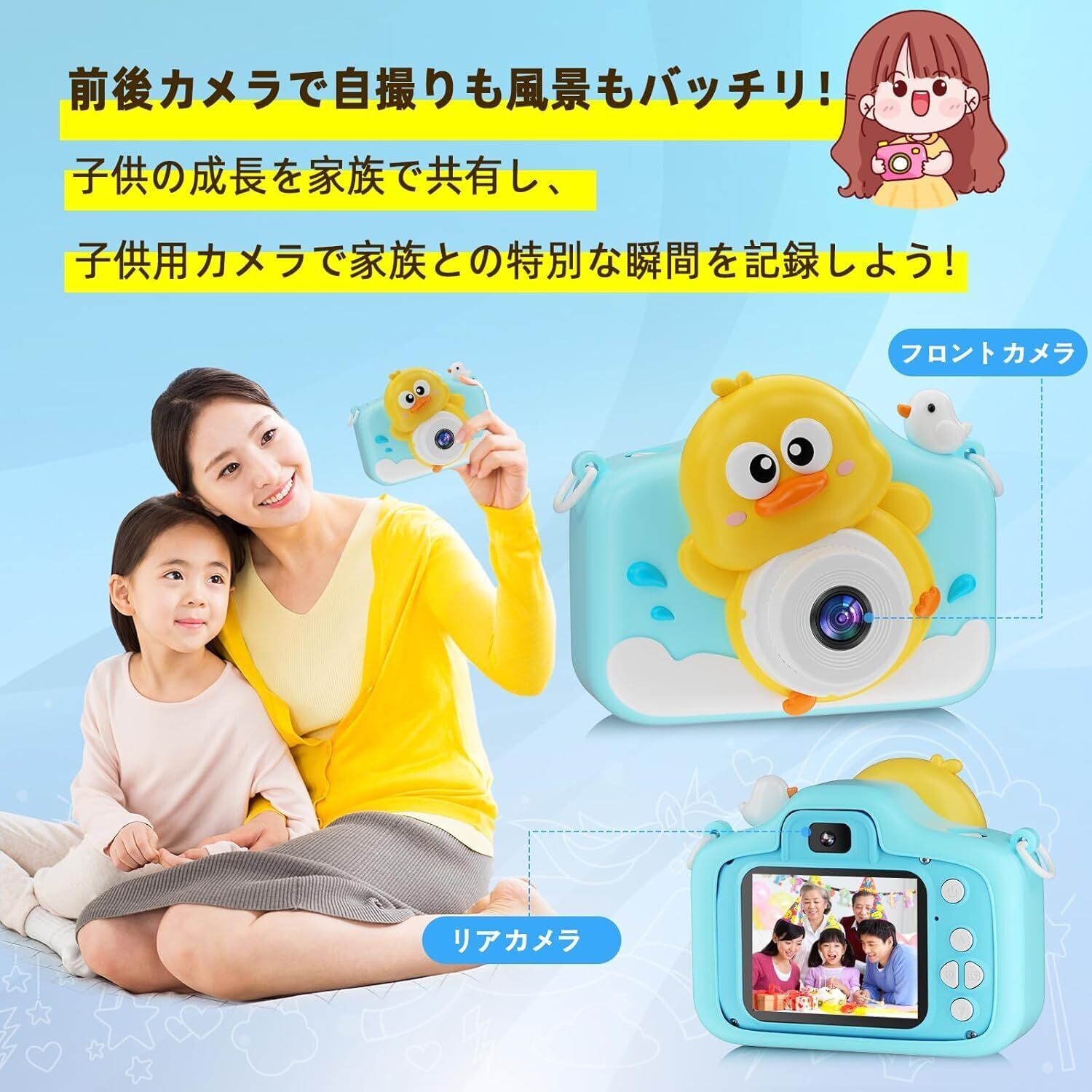 【数量限定】3 歳以上対応 キッズカメラ こども用カメラ 1080P フル HD 動画撮影 32GB 大容量内蔵 4 倍ズーム機能 USB 充電式 デジタルカメラ 自撮り デュアルカメラ 操作簡単 トイカメラ 女の子誕生日プレゼント 子供の日ギフトに最適 クリスマスプレゼント