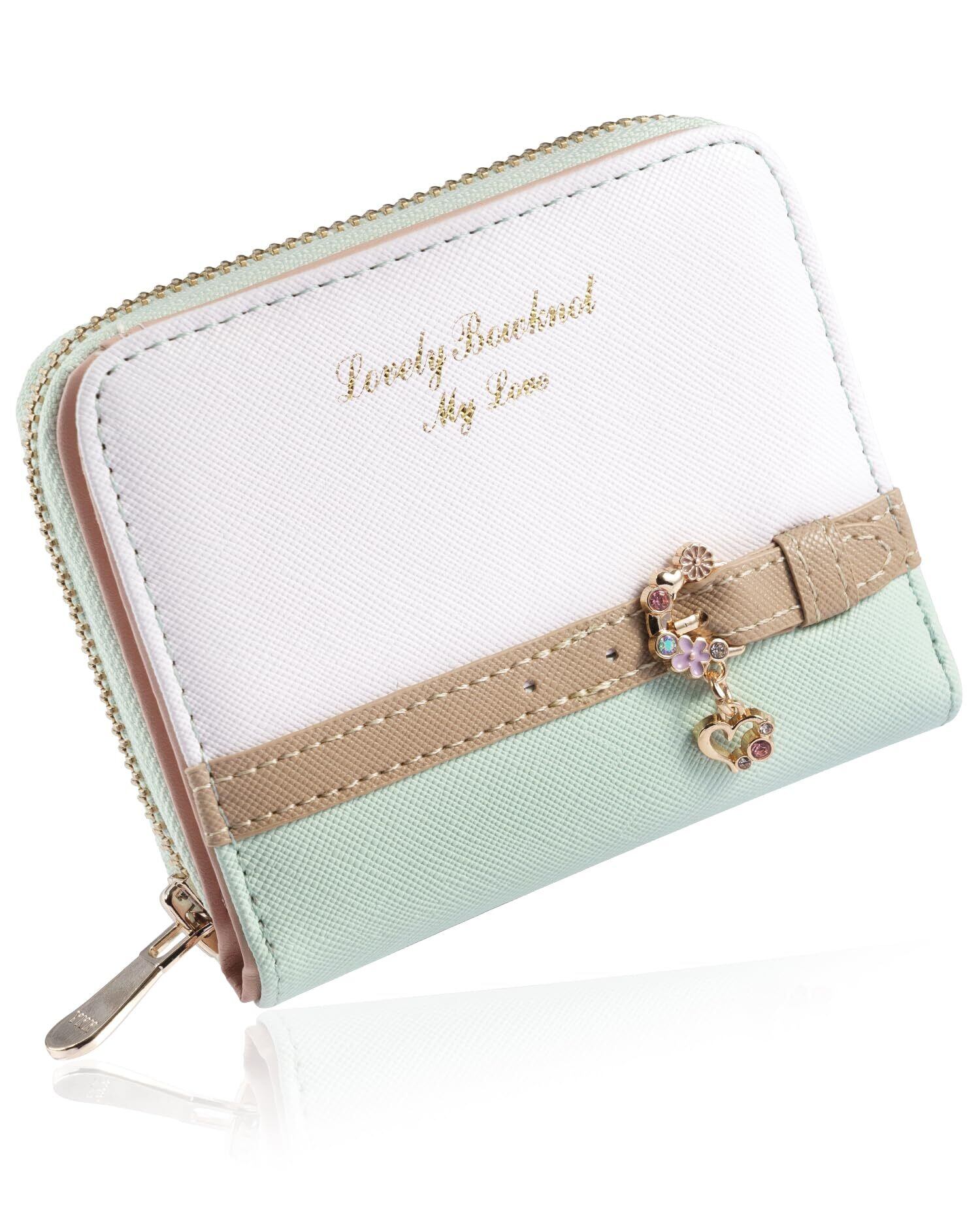 [A&Y] 【ギフトバッグ、メッセージカード付】財布 子供 女の子 レディース 小学生 プレゼント キッズ 二つ折り 小銭入れ ミニ コンパクト財布 (パステルグリーン単品(ギフトバッグ、メッセージカード無し))