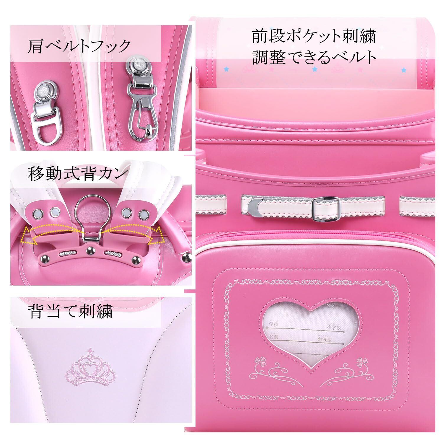 [Coulomb] クーロンランドセル 最新プリンセスモデル ランドセル女の子人気 小学生通学カバン ランドセル大容量 仕切り付き 高級人工皮革 パール生地 反射材 刺繍 水色 ベージュ 紫 ピンク ランドセル現品 日本書包 透明カバー付け 軽量ランドセル