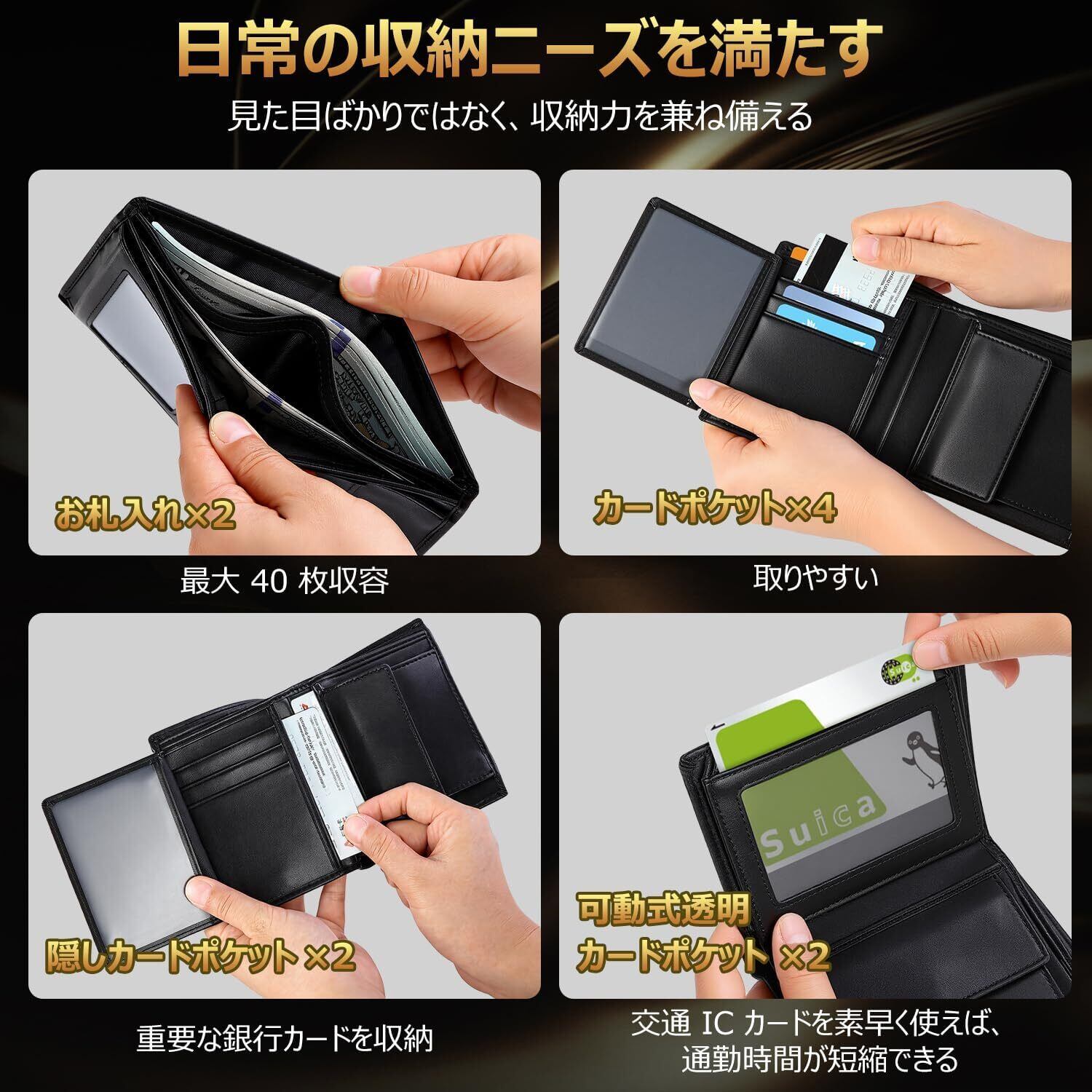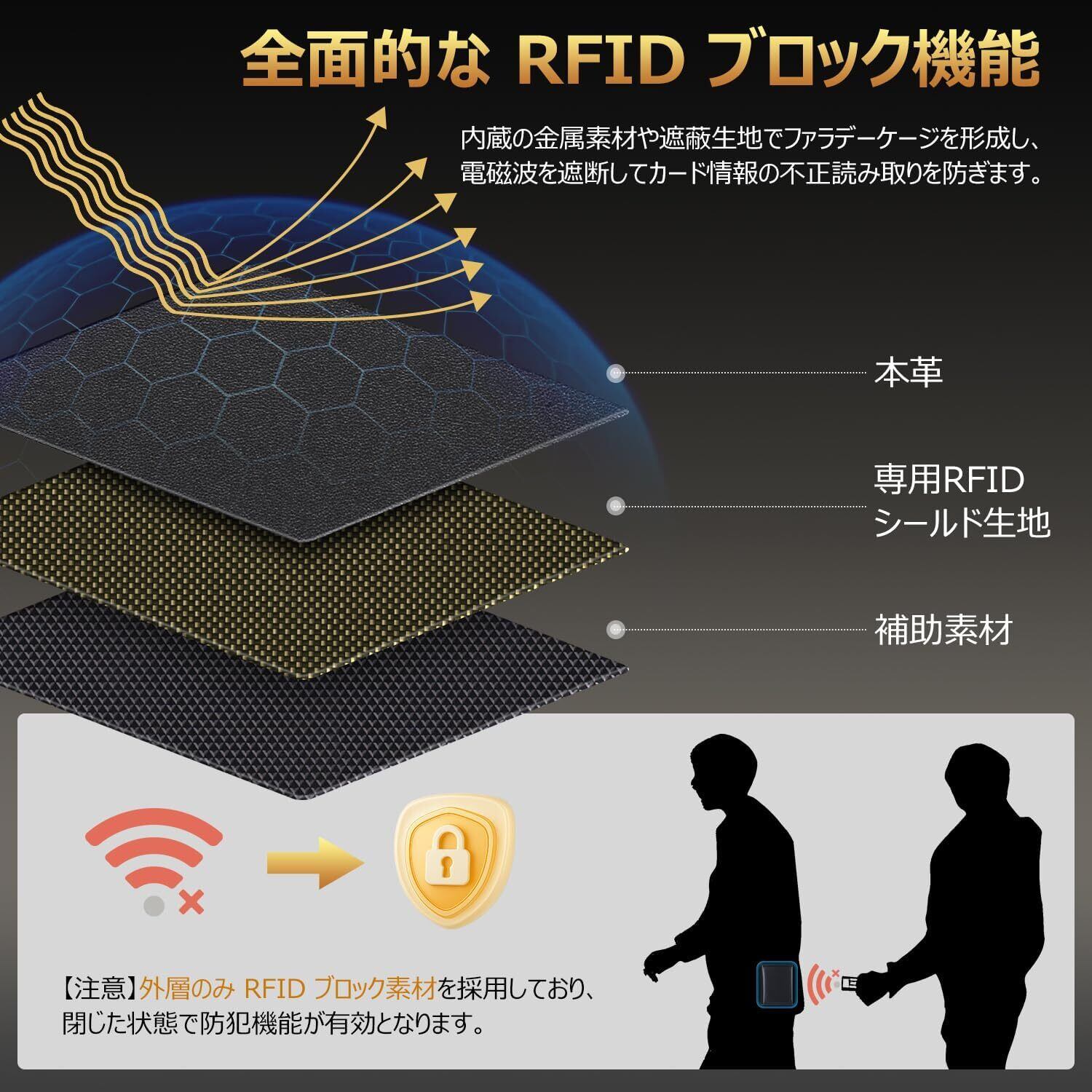 【安心と利便性を両立させた設計】この二つ折り財布 メンズは全面 RFID ブロック機能を採用したセキュリティ強化モデルです。個人の財産とプライバシーを守る防盗刷機能と、自由にページをめくれる透明カードスロットを備えた自由なポケットが完璧に融合。閉時は特殊電波遮断素材が IC チップの不正読み取りを完全ブロックし、情報漏洩を防ぎます。開時は財布を開けるだけでスムーズにカード利用可能で、透明カードスロットにより通勤改札の通過が速やかになるか、写真も収納できます。コンパクトながら便利と安全を両立し、電車通勤や人混みでの利用に安心感を提供するメンズ財布です。