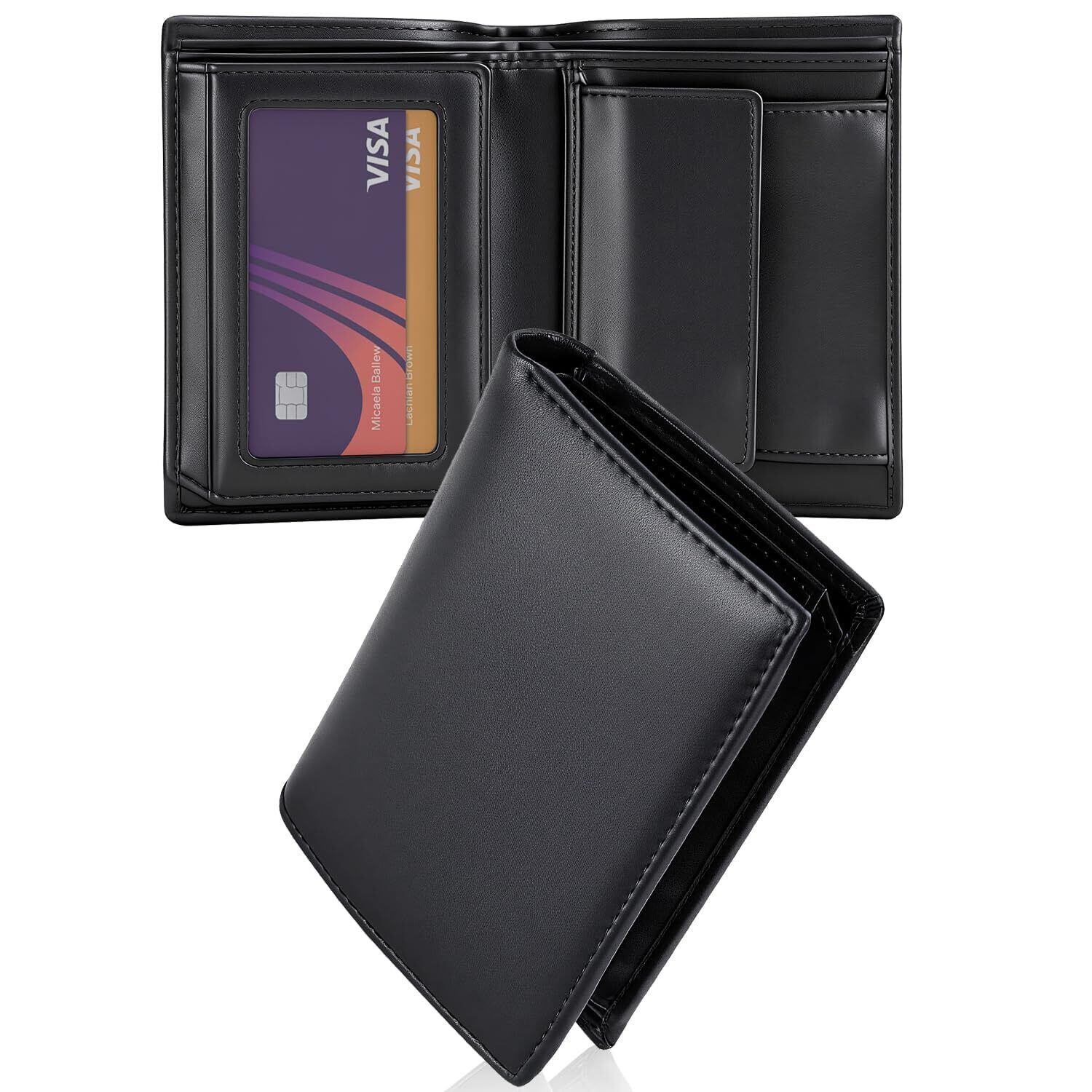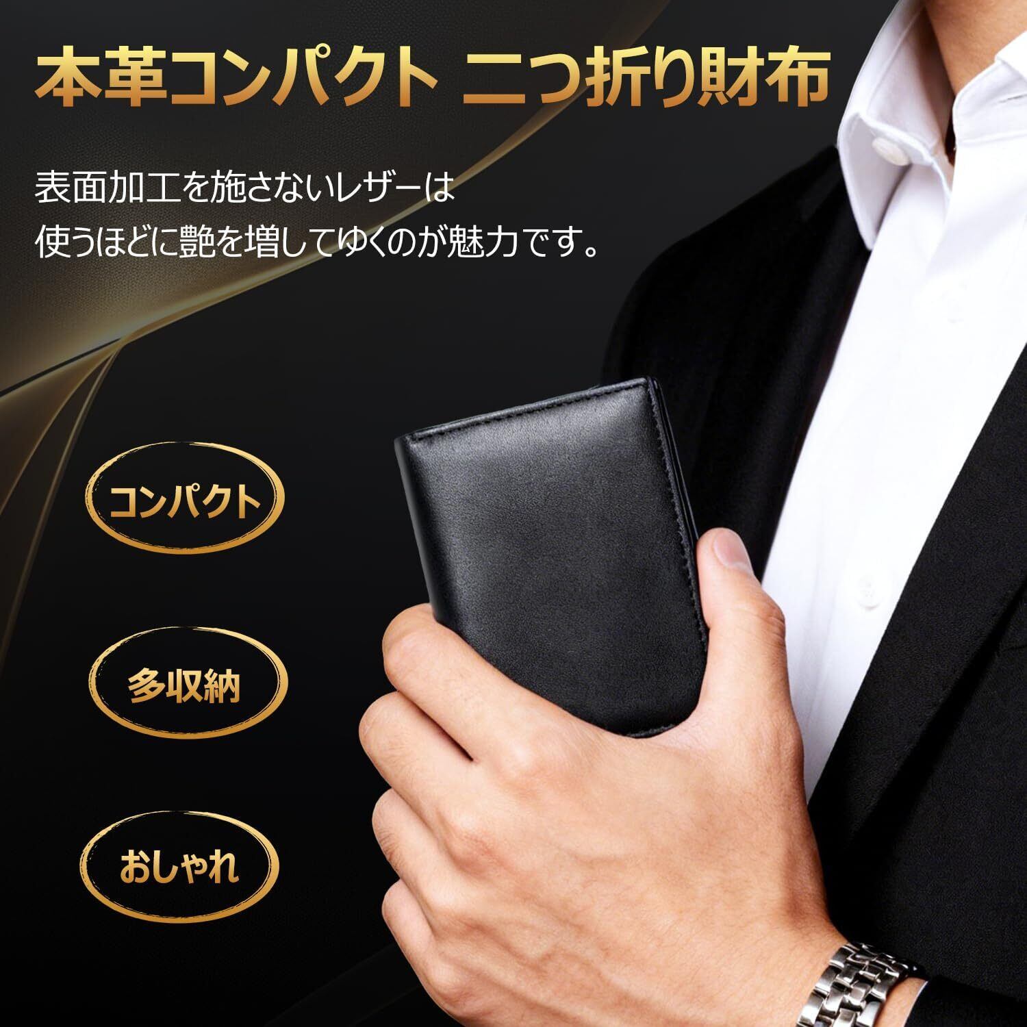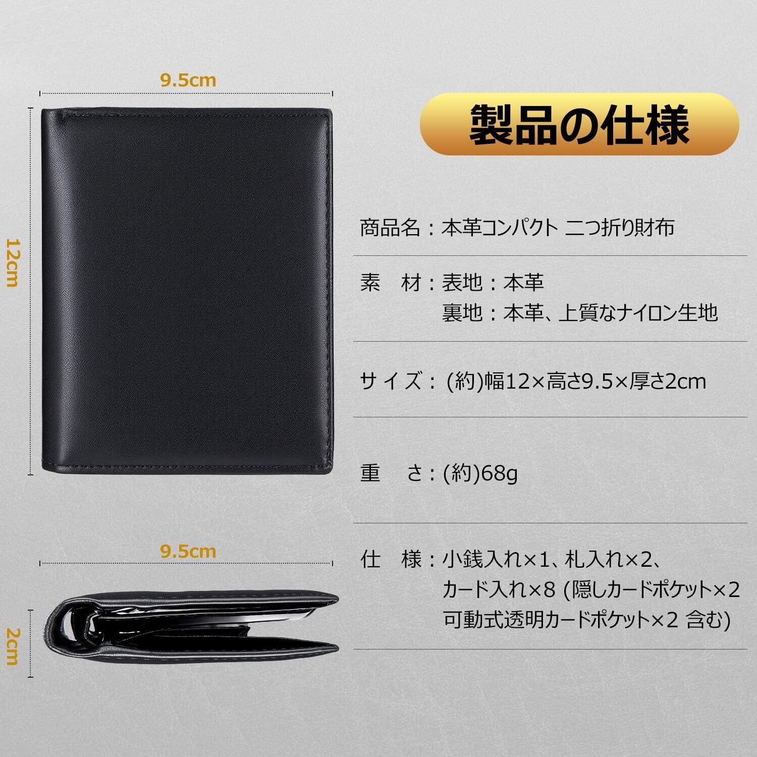 [JPILST] 財布 メンズ 2つ折り 本革 RFIDスキミング防止 コンパクト 使いやすい 大容量 さいふ 二つ折り財布 メンズ 薄型 カード 8 枚収納 ブック型透明カードポケット 一流の職人が作る 折りたたみさいふ 紳士用 父の日プレゼント ギフト BOX 入り(ブラック)