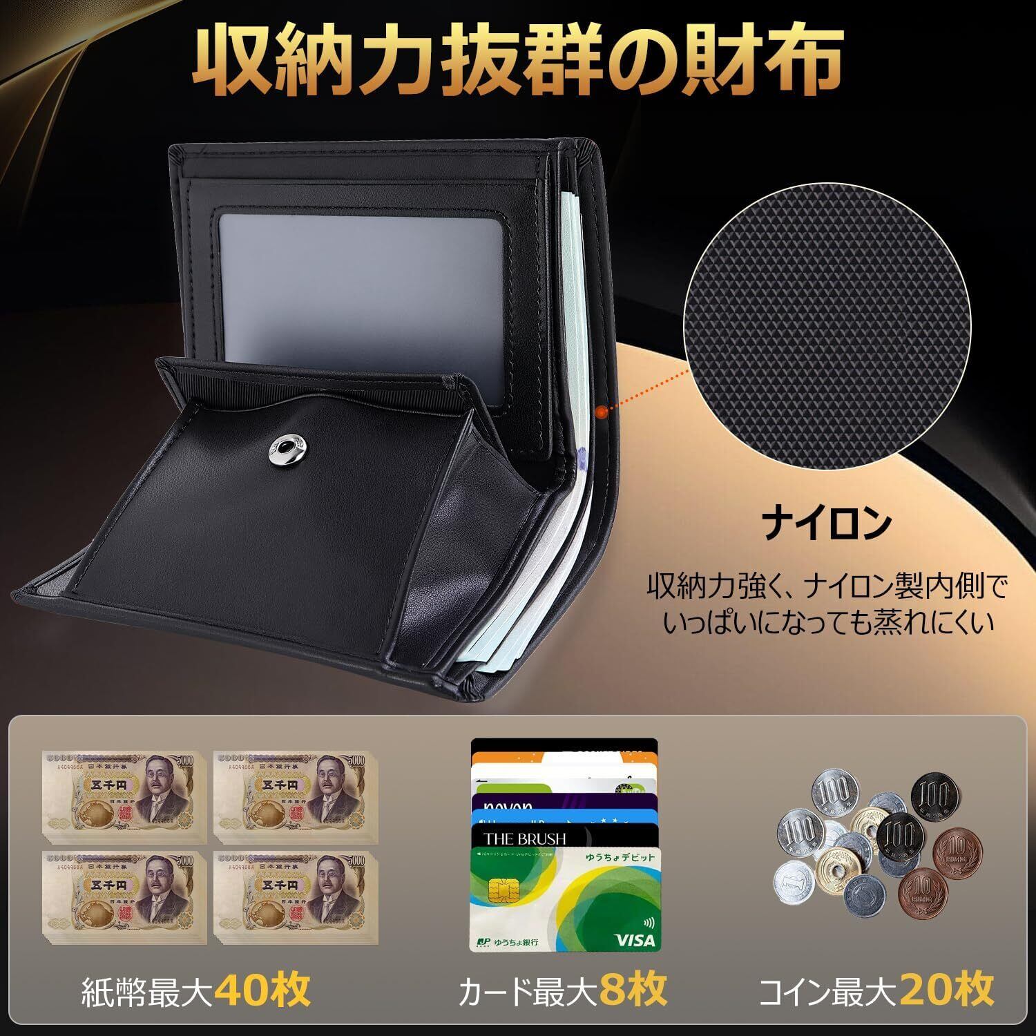 【経年を重ねるほど輝く本革素材】上質な本革を使用したこの財布 メンズ 二つ折りは、天然の肌理と深みのあるツヤ感で上品な格調を演出し、使用するほどに手に馴染み艶やかに輝き続ける経年美が最大の特徴。優れた耐久性で長期使用に耐え、日常の摩擦にも強い実用性と、大人の品味を物語るデザインを兼ね備えたコンパクト財布です。特にビジネスメンズに最適化された設計で、落ち着いた印象と安定感を与え、商談や通勤の場面で自信を添えます。内里をナイロン採用し、全皮革より軽量で持ち運びが楽。優れた通気性で蒸れを防ぎ、梅雨時も快適。本革の高級感とナイロンの機能性を融合し、メンズ 2 つ折り財布ならではの格調と実用性を両立した大人の逸品です。