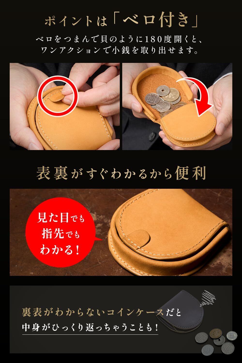 【常識を覆す 30枚収納 設計】手ぶら派の極上ギア ポケットに収まる手のひらサイズ:約8cm (幅) 約8cm (高さ) 約1.8cm (厚さ)、重さわずか約30gの超軽量設計。 ノーストレスな携帯性を実現:ズボンやジャケットのポケット、小さなバッグに入れても一切邪魔にならない、 計算し尽くされたサイズ感です。極小にして大容量:この極小サイズながら、小銭30枚を入れても美しい馬蹄型のフォルムをしっかりキープします。