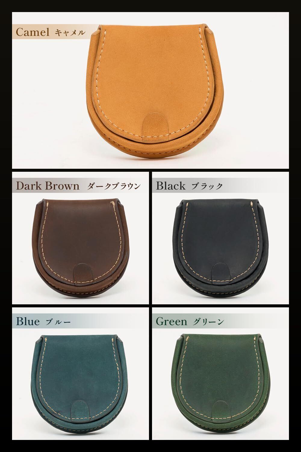 【新着商品】[ 亀登鞄製作所 ] 馬蹄型 本革 小銭入れ コインケース 財布 コンパクト (大容量 小銭30枚収納 でも形はそのまま)( 幸運を呼ぶ 馬蹄型) メンズ | 大容量 30枚収納 | クレイジーホースレザー 牛革|経年変化を楽しむ|ギフト プレゼント (グリーン)