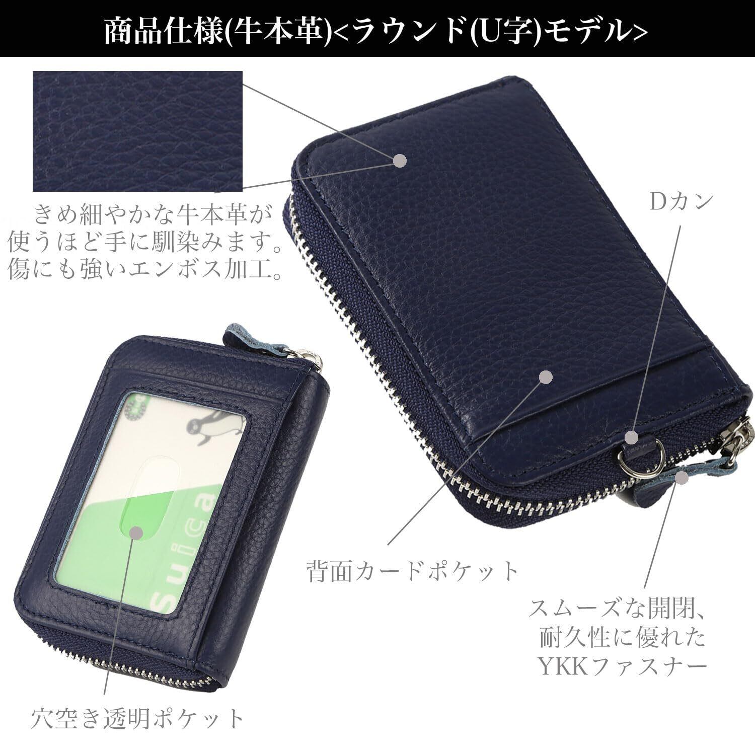 [Shoebill] パスケース 小銭入れ リール メンズ レディース コインケース レザー 本革 ラウンドジップ 定期入れ (ネイビー)