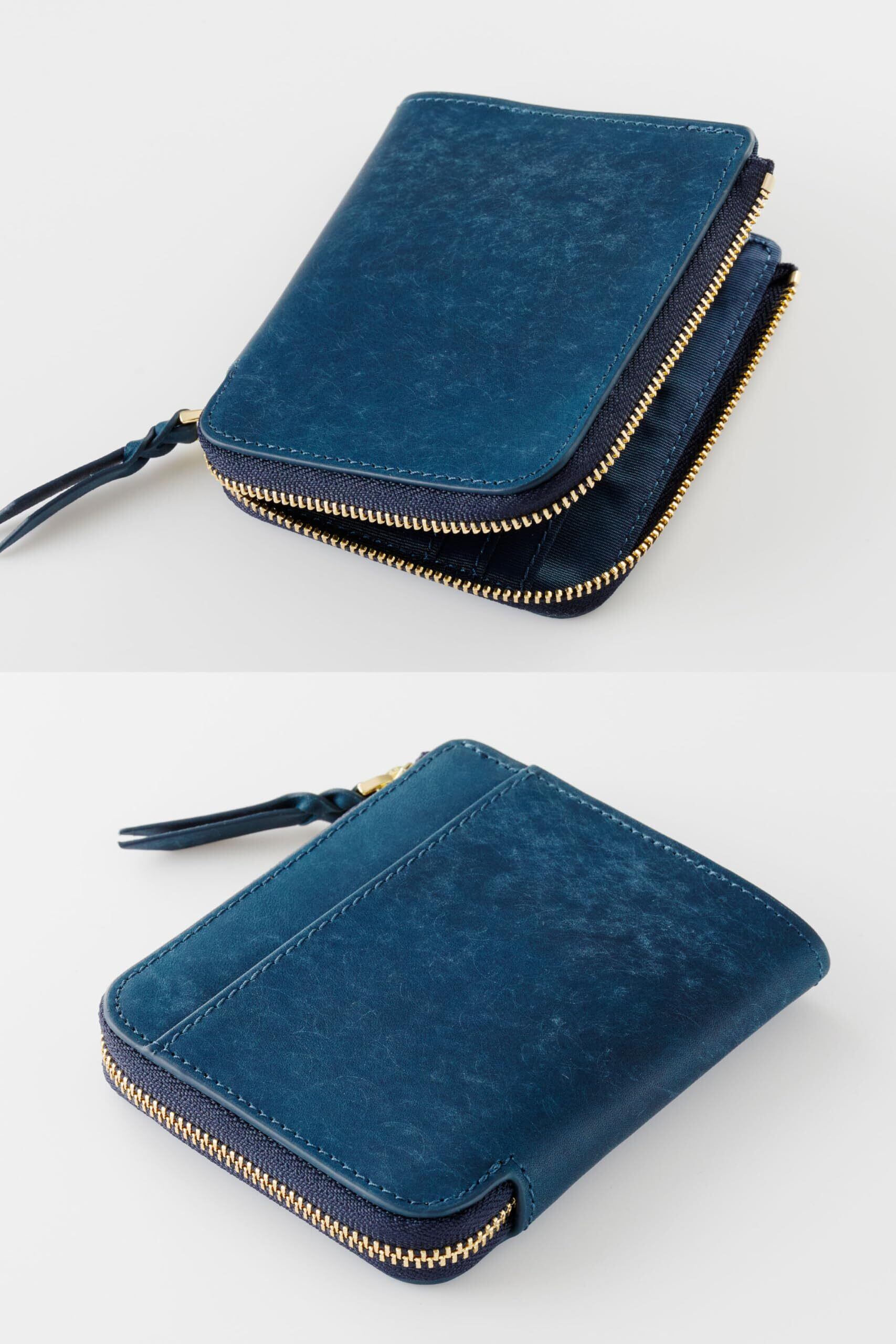 コインケース 本革 財布 メンズ コンパクト 二つ折り【500人に選ばれたL字ファスナー財布】イタリアンレザー 小銭入れ カード お札 YKKファスナー ミニマルウォレット (ブルー)