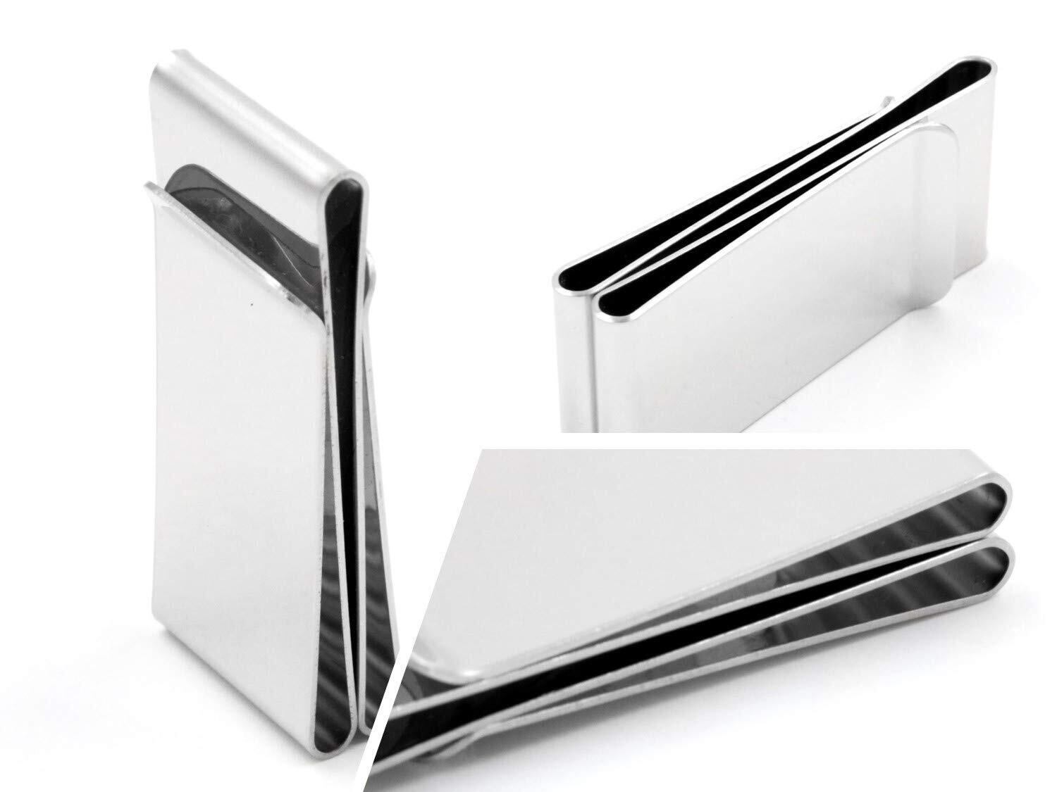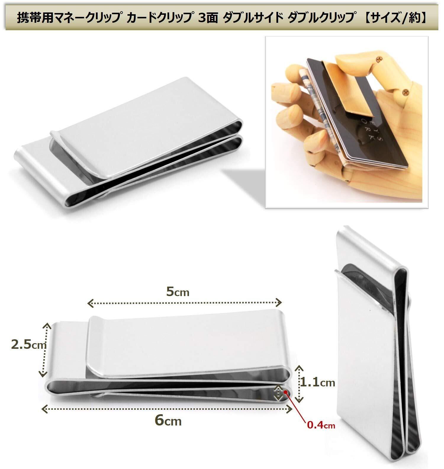 [XPデザイン] ステンレス製マネークリップ カードクリップ 三つ折り ダブルサイド ダブルクリップ 財布 カードケース カードホルダー (シルバー)