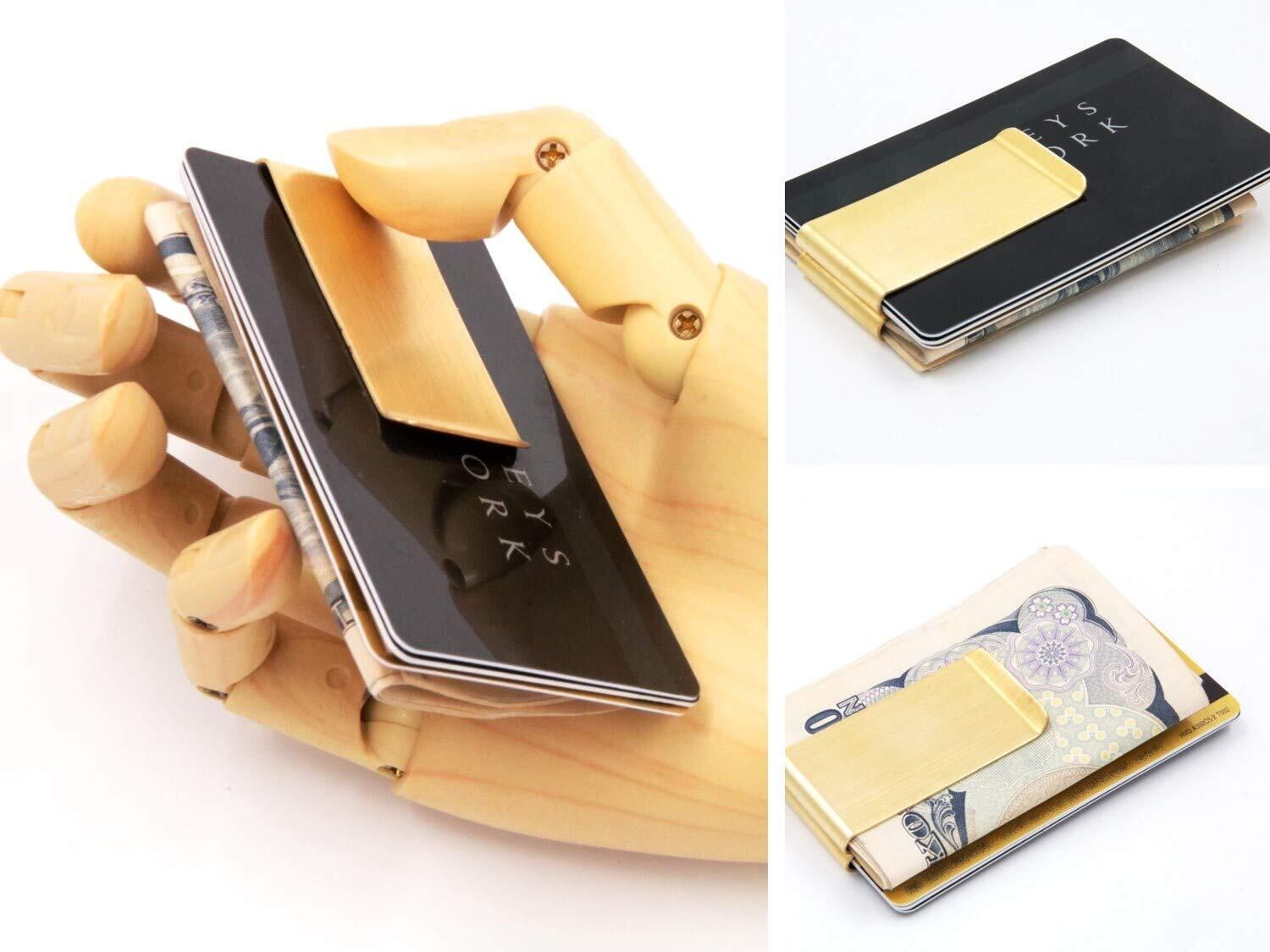 【三つ折りダブルクリップ構造】表・裏の2か所で紙幣やカードを仕分け収納可能。マネークリップとカードケースを一体化し、スマートに持ち運べます。