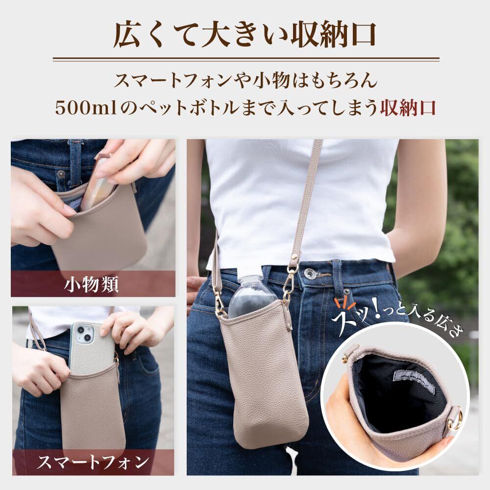 ころんとかわいいシンプルなスマホポーチ ショルダーストラップとハンドストラップの2種付き 気分によってストラップの付け替えが可能 500mlのペットボトルまで収納できる広くて大きい収納口 鍵などの小物を入れてもスムーズに取り出せる広めのファスナーポケット シュリンク加工で傷や汚れが目立ちにくい