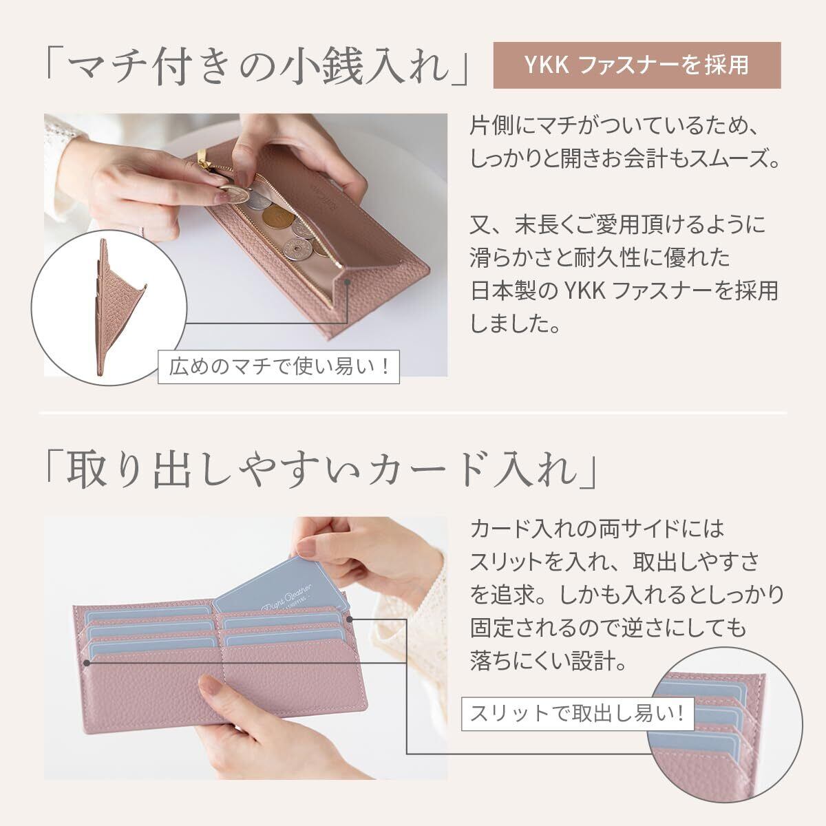 [RafiCaro] 財布 薄型 レディース お札入れ 本革 長財布 軽い 軽量 お札を折らない YKKファスナー マチ付き 小銭入れあり フラグメントケース スマートウォレット シャンパンゴールド