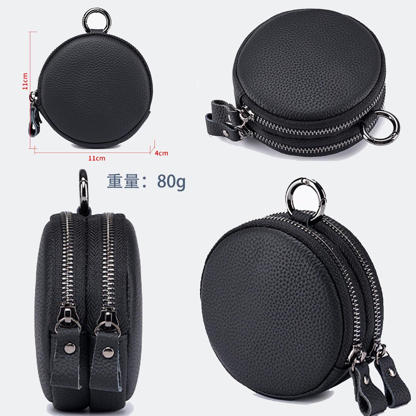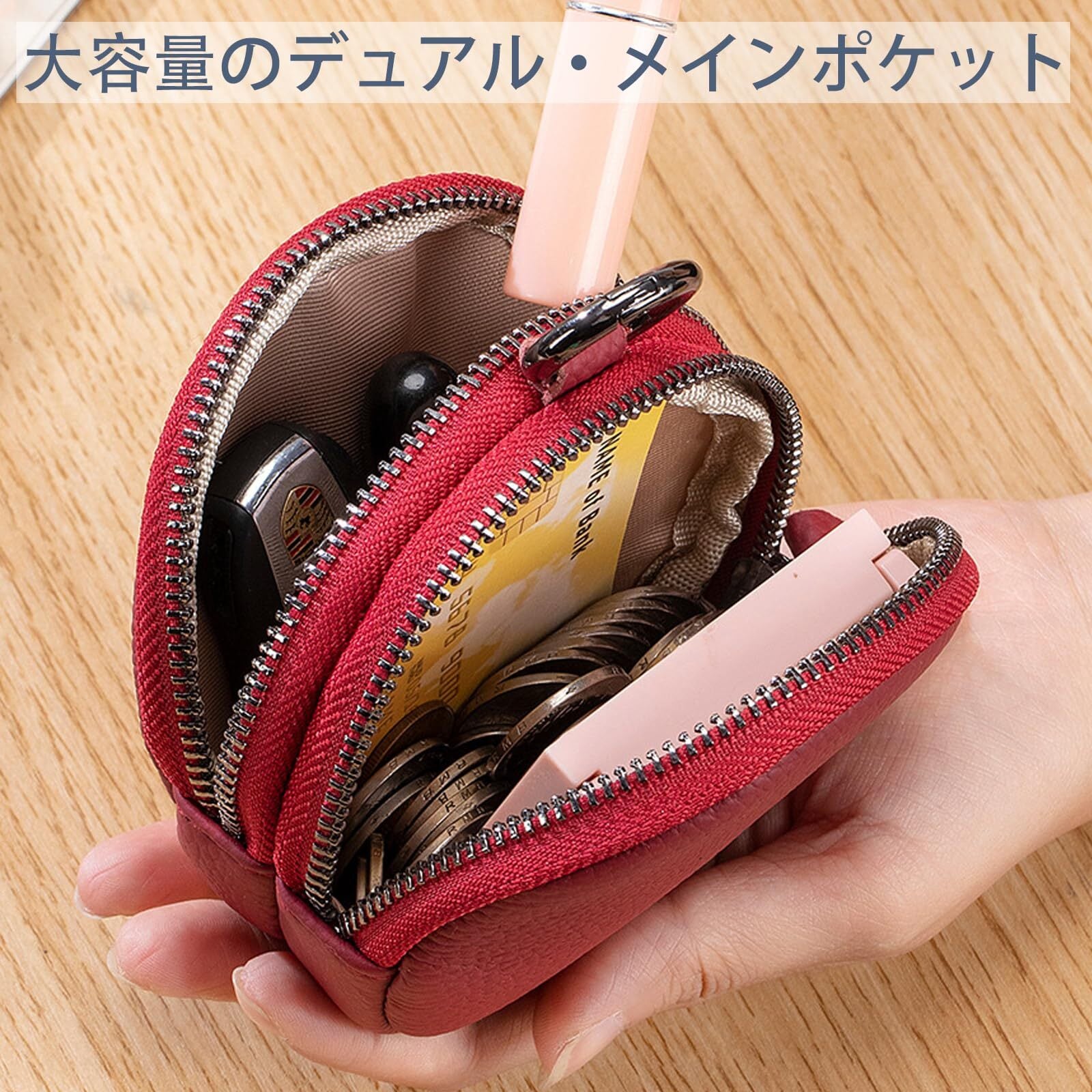レディース 小銭入れ 本革 円形 人気 コインケース リング留め具付き ポータブル 大容量 可愛い おしゃれ ウォレット 小物入れ 軽量 80g 通勤 通学 ミニ 財布 コンパクト コインケース ダブルジッパー コンパクト 小銭 IC ID カード入れ ピンク