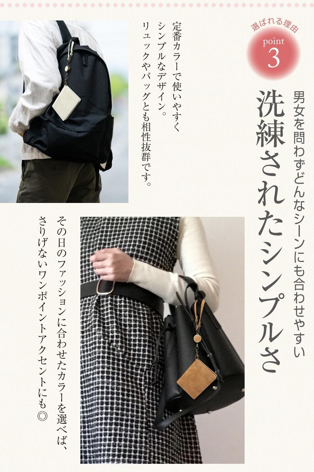 【シンプルなデザイン】シンプルでお洒落なキーリールなので、さまざまな小物とも相性が良く、お気に入りの財布やカードケースのストラップのみが破損した際の交換用としても重宝されます。ストラップの色は、ブラック、ホワイト、ブラウンの3色をご用意しております。レディース、メンズ、キッズをはじめ、性別・年齢を問わずご使用いただけます。