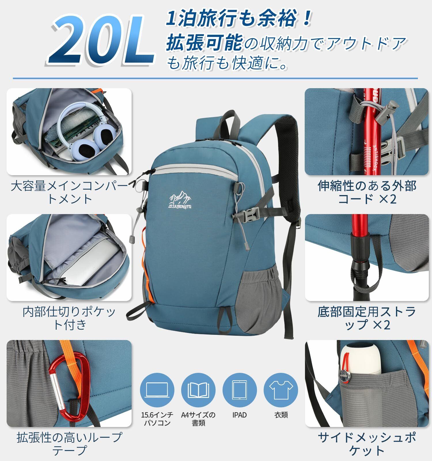 [Kayiyasu] リュック 20L 登山 バックパック 防水 撥水 耐摩耗 軽量 ハイキング アウトドア 旅行 通勤 通学 防災 キャンプ リュックサック メンズ レディース ユニセックス 通気性 バッグ 大容量