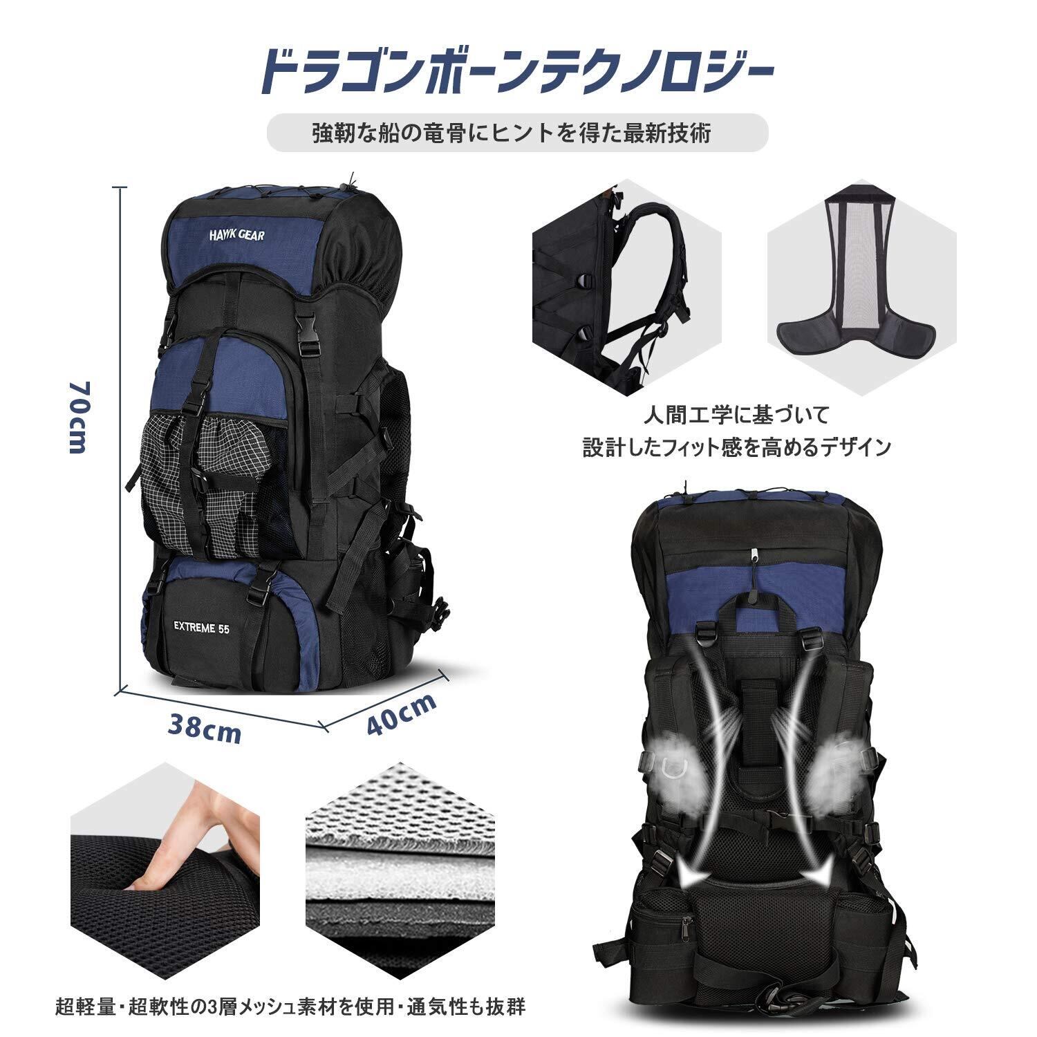 [HAWK GEAR(ホークギア)] バックパック 55L 防水 大容量 レインカバー ザック 長期旅行 防災 災害