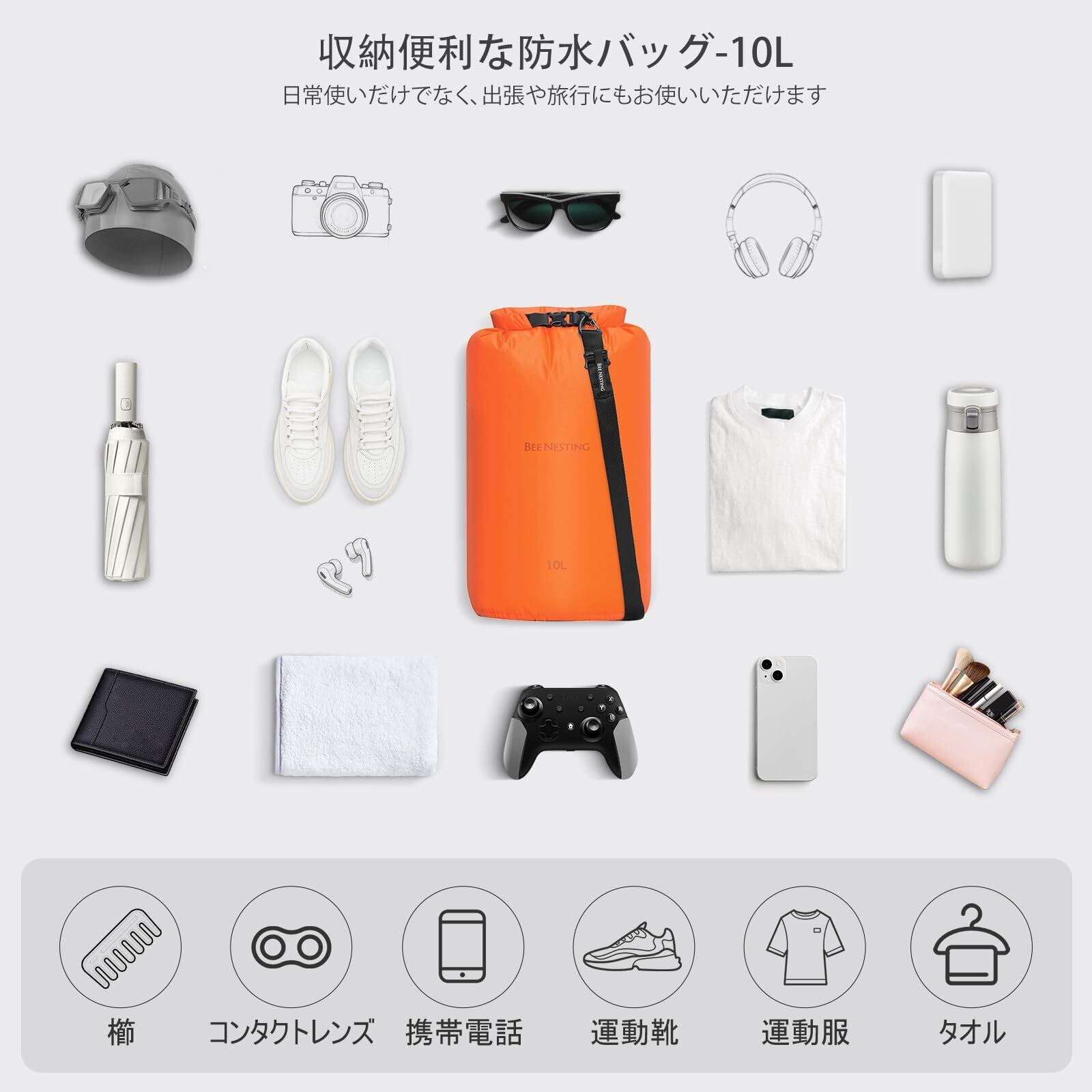 Bee Nestingドライバッグ 超軽量 防水バッグ 折りたたみ スタッフバッグ 完全防水 ウォータープルーフバッグ 防災 温泉 海水浴 釣り ビーチ 水泳 登山 旅行 便利グッズ (ダークグリーン, 10L)