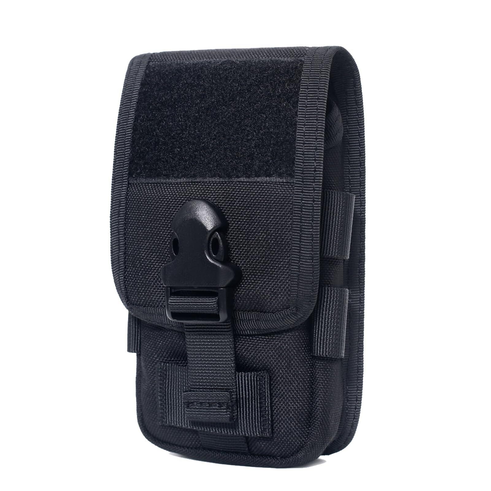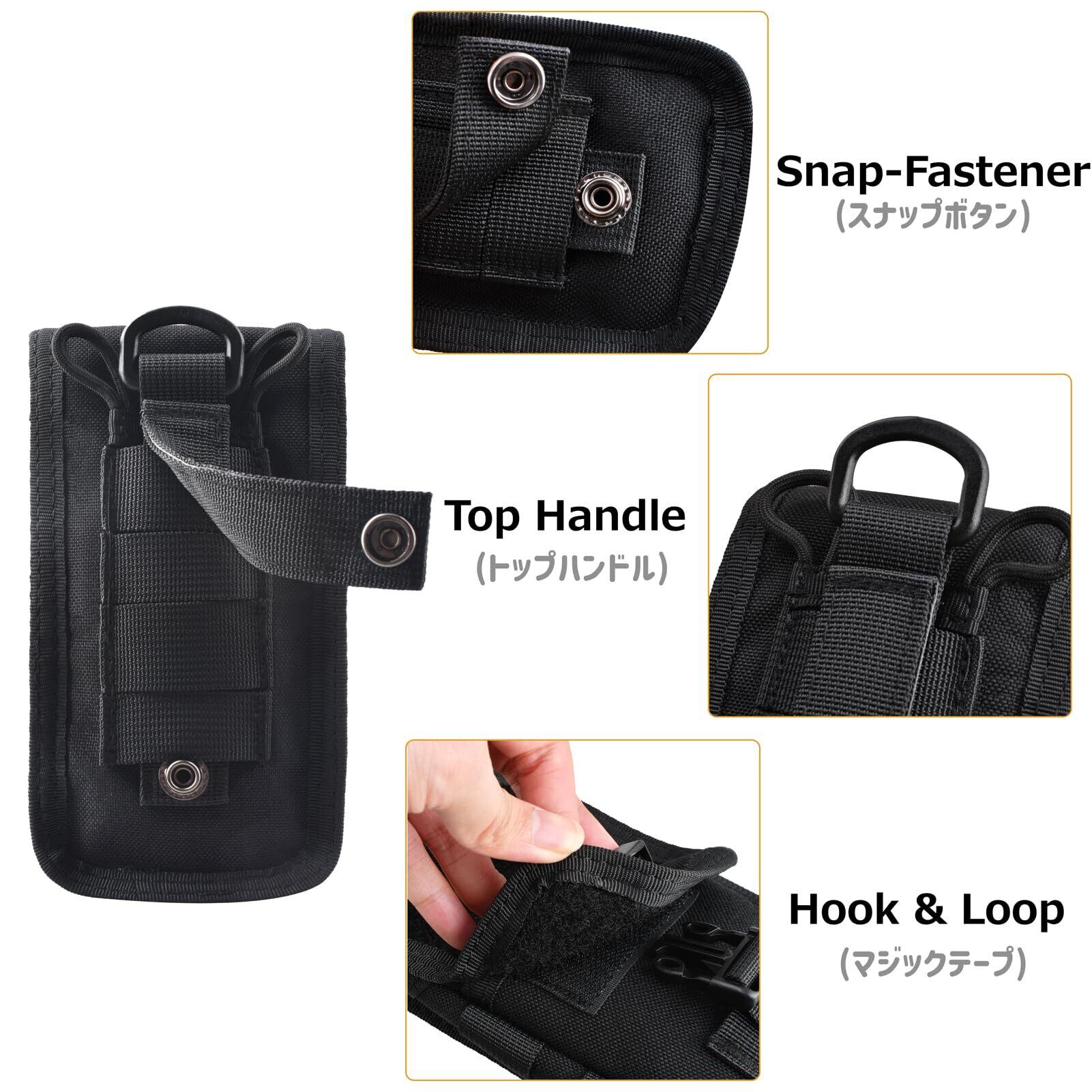 Azarxis スマホポーチ Molle対応 スマートフォン 手帳型 スマホケース モールシステム ユーティリティ EDCポーチ サバゲ― タクティカル ユーティリティポーチ (ブラック02)
