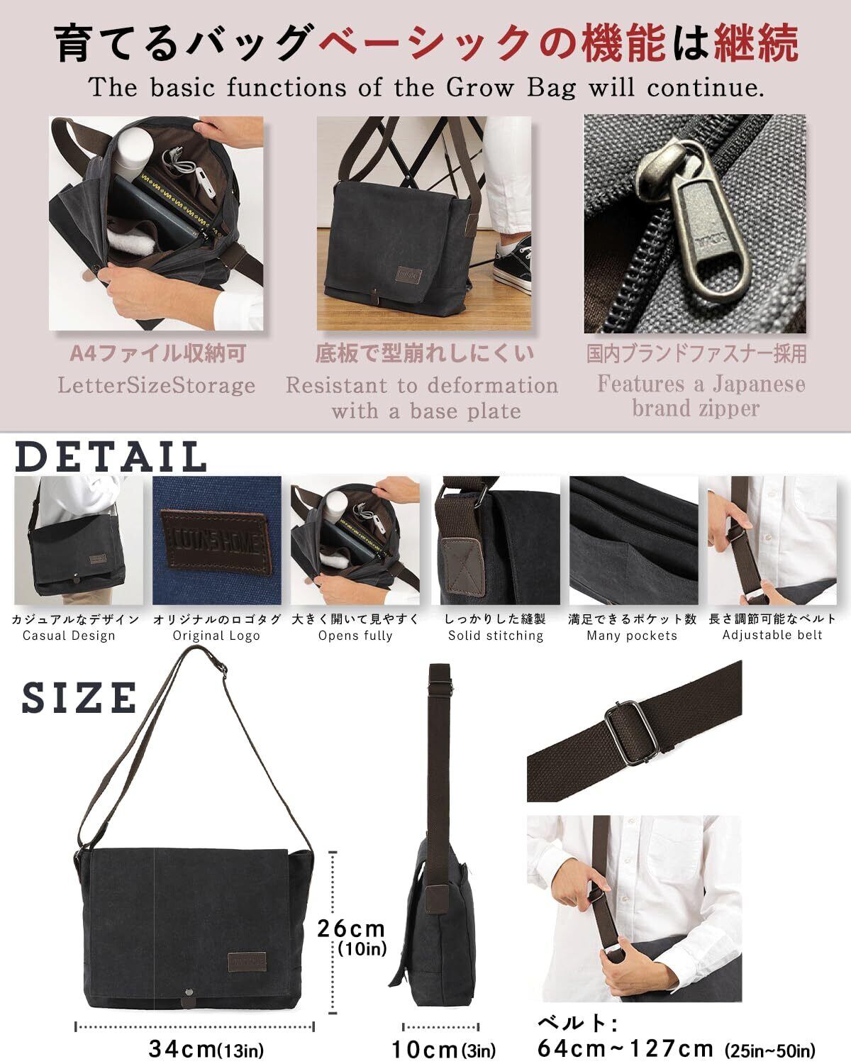 【上質なキャンバス】 上質な生地を使い安っぽくなく高級感のある仕上がりになってます。【撥水機能】キャンバスの質感はそのままに撥水機能をプラスしました。より実用的なメッセンジャーバッグを目指しました。