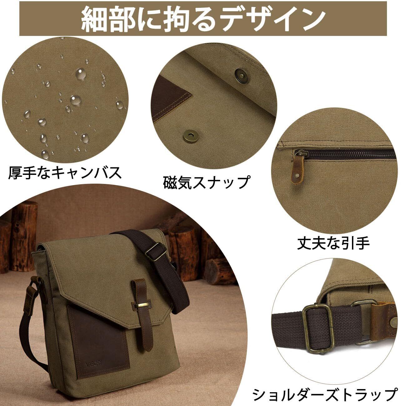 【2022最新】[Vaschy] 帆布 ショルダーバッグ メンズ 縦型 メッセンジャーバッグ 斜め掛けバッグ ビジネスバッグ 通学 通勤 アウトドア