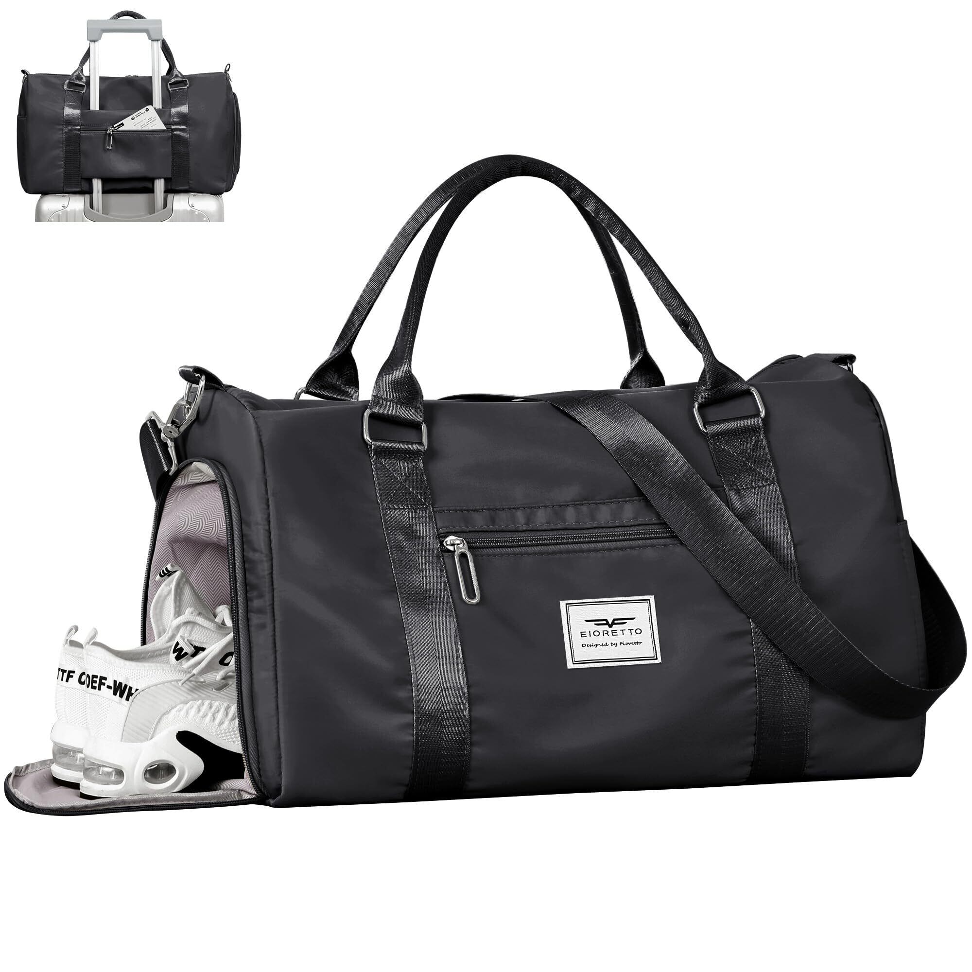 【GSG】ボストンバッグ 修学 大容量 旅行バッグ 1泊 2泊 ジムバッグ スポーツバッグ キャリーオン 軽量 小さめ (シューズ収納付き/乾湿分離ポケット付き) 4WAY コンパクト ブラック23014