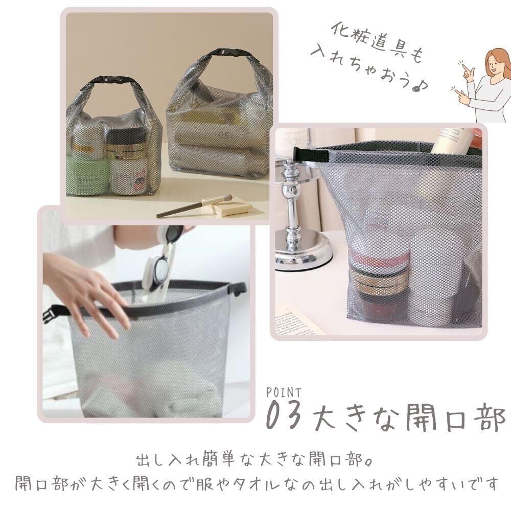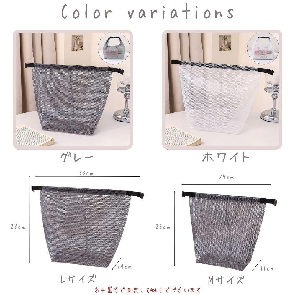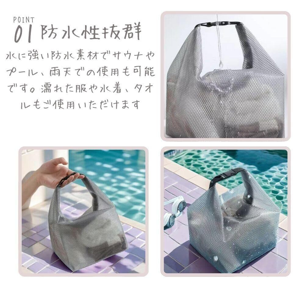 【選べる2サイズ】Lサイズ:縦28×横33.5×マチ14cm、Mサイズ:縦23cm×横27cm×マチ11cmの2サイズ。ご利用用途によって選べます 【防水性抜群!】水に強い防水素材でサウナやプール、雨天での使用も可能。濡れた服や水着、タオルもご使用いただけます。 【中身が見やすい半透明】半透明で中身が見えて便利!必要なものが見つかりやすいです 【大きな開口部】出し入れ簡単な大きな開口部。開口部が大きく開くので服やタオルなど出し入れがしやすいです 【整理整頓にも】小物だけでなく、おもちゃや雑貨の整理整頓にも使えます。