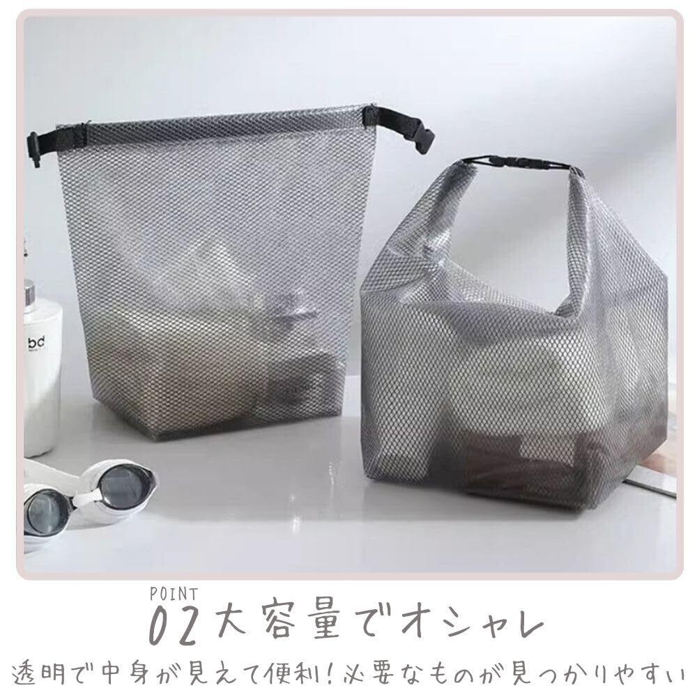 【数量限定】ddice 防水収納バッグ プールバック 化粧ポーチ 半透明 防水 大容量 学校 持ち運び 手提げ 化粧品 洗面用具 (グレー, Lサイズ)