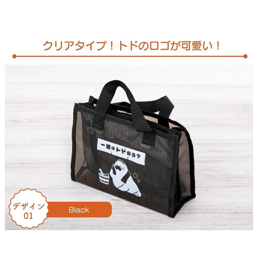 【数量限定】グローバルジャパン トドのう サウナバッグ (ブラック) クリア ファスナーポケット PVC素材 スパバッグ 温泉 銭湯