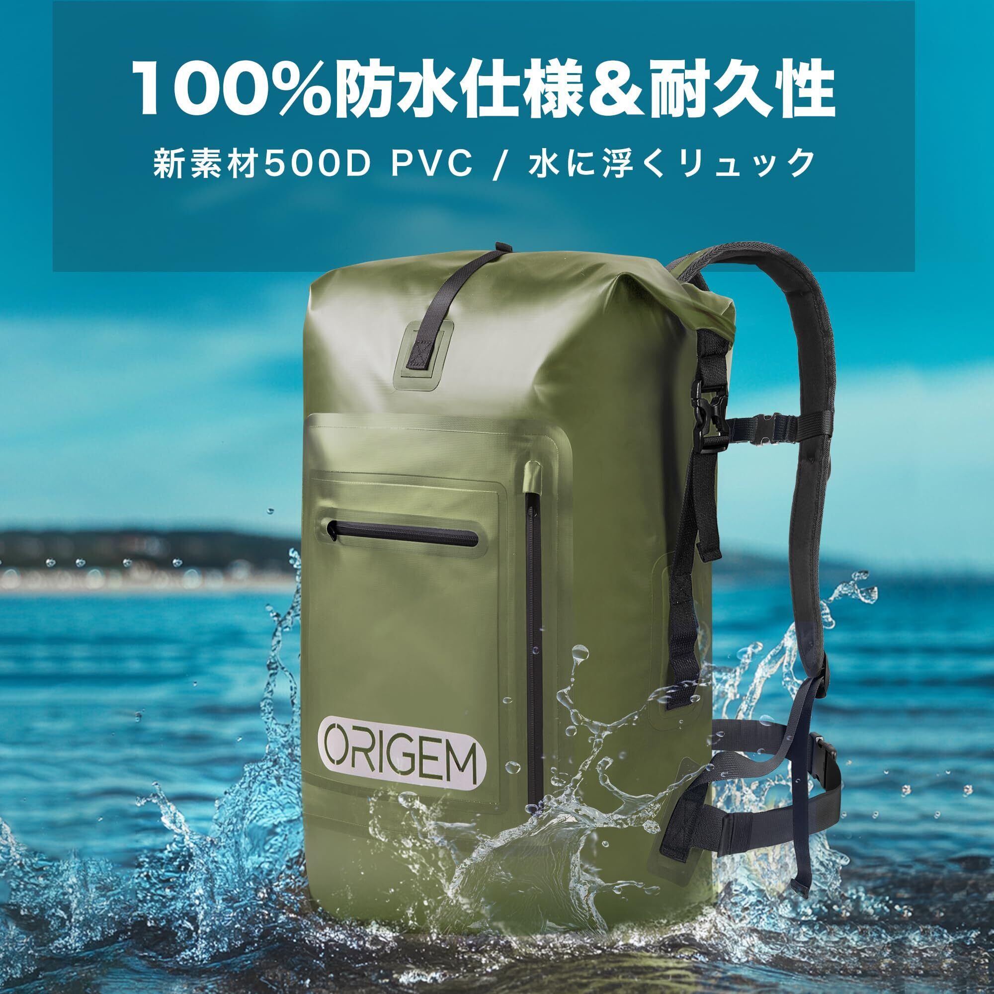 【100%防水仕様&耐久性】Origem防水バックは、頑丈で耐久性のある500D PVCサンドイッチメッシュを使用し、プロのシームレス防水技術により、高い耐久性と圧倒的な防水性能を提供します。開口部を丸めて巻くことで上部からの浸水を防ぎます。様々な過酷な環境でも中の荷物を濡らすことなく安心して持ち運べるのがメリットです。また、引張強度、耐摩耗性、耐衝撃性に優れた耐性を備え、バックパックを長持ちさせます。