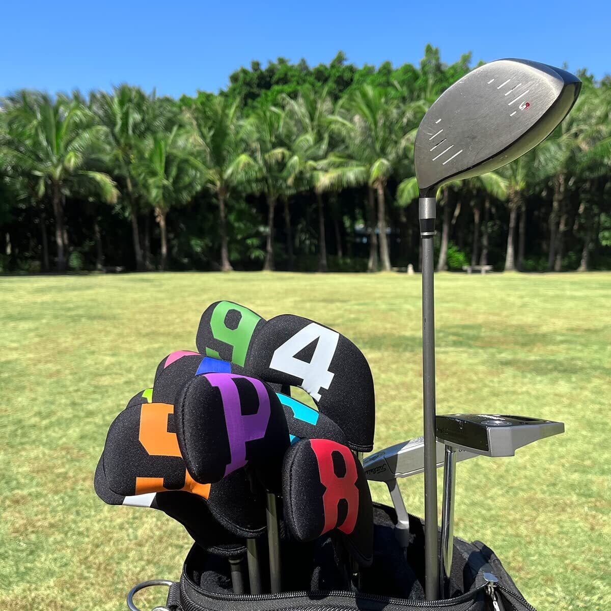 【特価商品】ゴルフアイアンカバー,ゴルフアイアンヘッドカバー セット ゴルフヘッドカバー アイアン用 ネオプレン素材 ゴルフアイアン用ヘッドカバー カラフル番手付きアイアンヘッドカバー