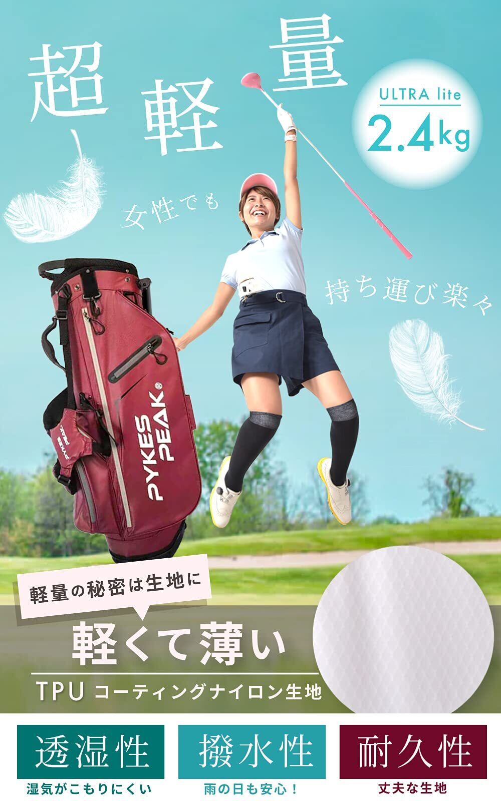 PYKES PEAK キャディーバッグ スタンド【軽量 2.4kg/ 5分割口枠/ 9.0 型/ 47インチ対応】ゴルフバッグ メンズ レディース パイクスピーク【COOL SERIES】
