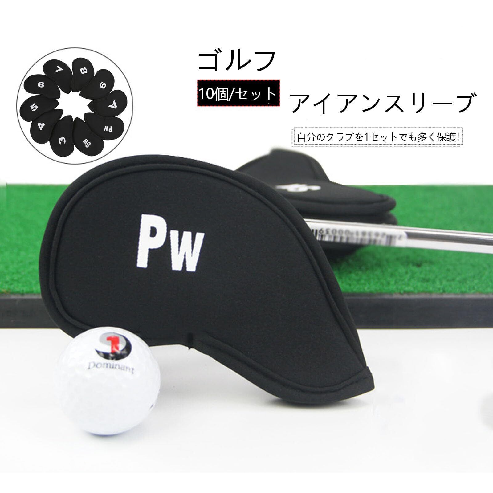 【人気商品】ゴルフアイアンカバー ヘッドカバー (3〜9、A、Pw、Sw)番号 保護カバー10枚入り, ブラック