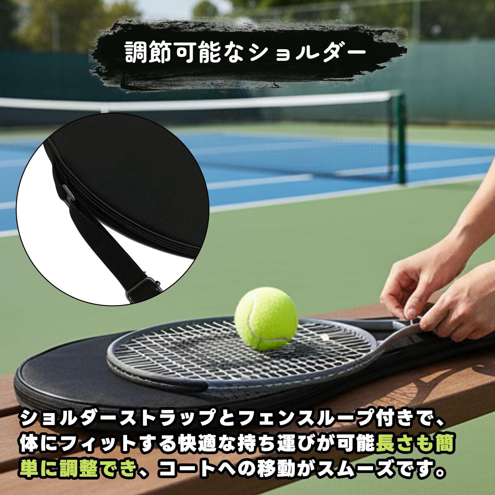 【調節可能なショルダー】ショルダーストラップとフェンスループ付きで、体にフィットする快適な持ち運びが可能。長さも簡単に調整でき、コートへの移動がスムーズです。