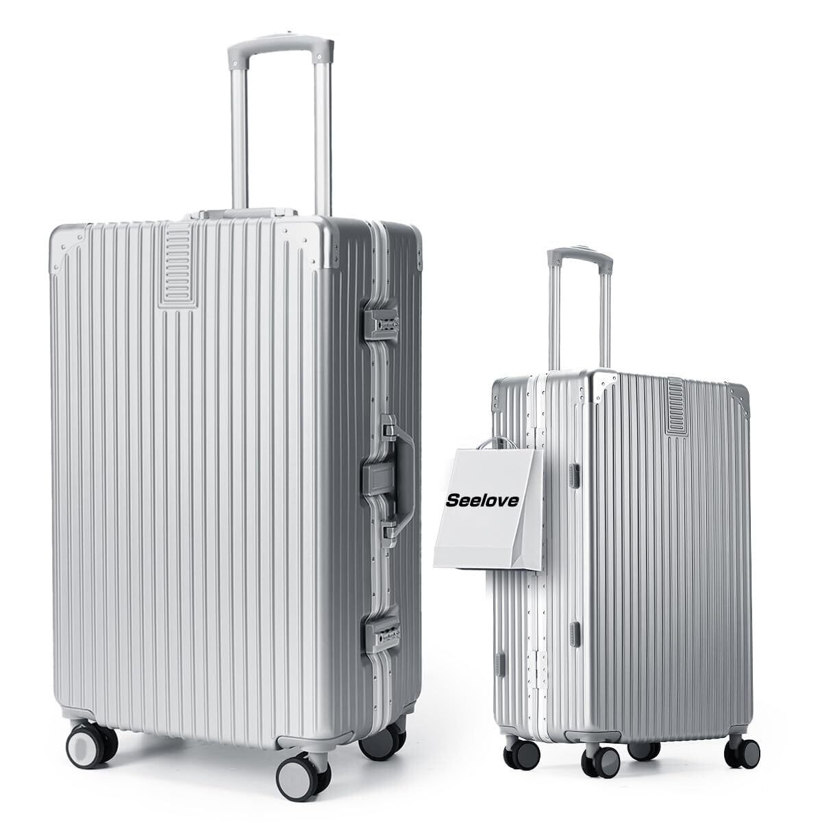 [Seelove] スーツケース キャリーケース 大型 大容量 ABS+PC 耐衝撃 超軽量 スーツケース 100リットル キャリーバッグ キャスター 360度回転 静⾳ large suitcase 行李箱 TSAロック 出張 旅⾏(XLサイズ(10泊~長期旅行/100L)(77*47*29.5cm) シルバー)