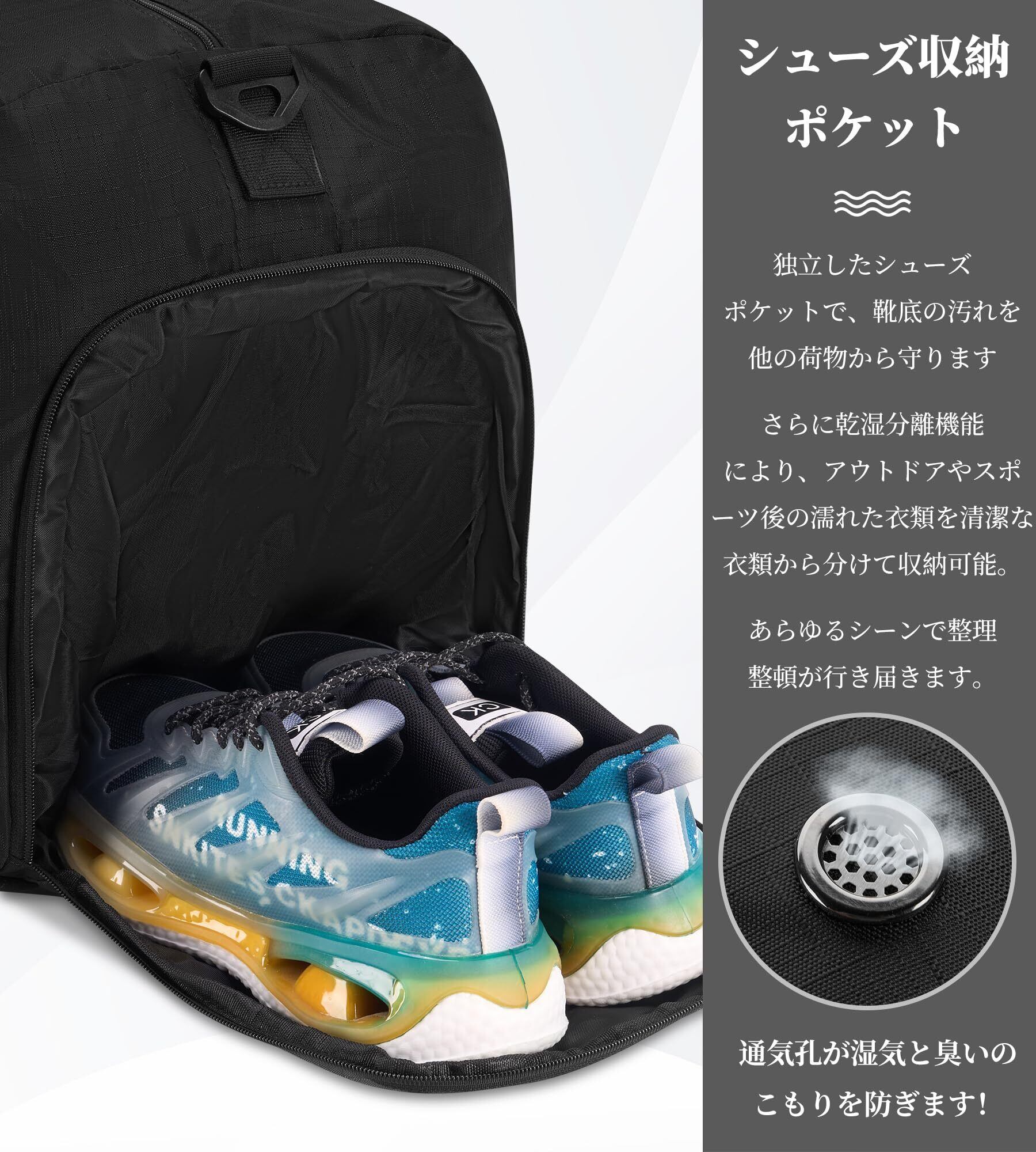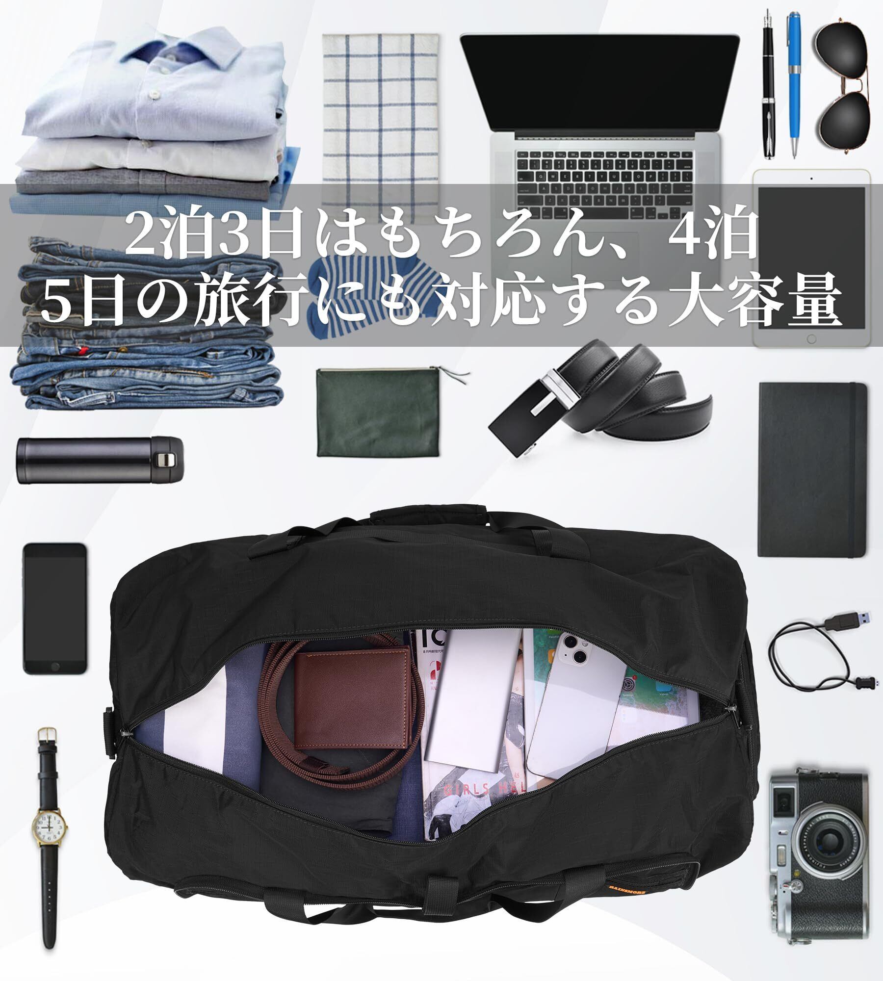 【2022最新】旅行バッグ 1泊2日 2泊3日 修学旅行 出張 ボストンバッグ 折りたたみ 大容量 100L スポーツバッグ 旅行カバン トラベルバッグ ジムバッグ YKKファスナー 撥水加工 ダッフルバッグ シューズ収納 乾湿分離 3way ブラック
