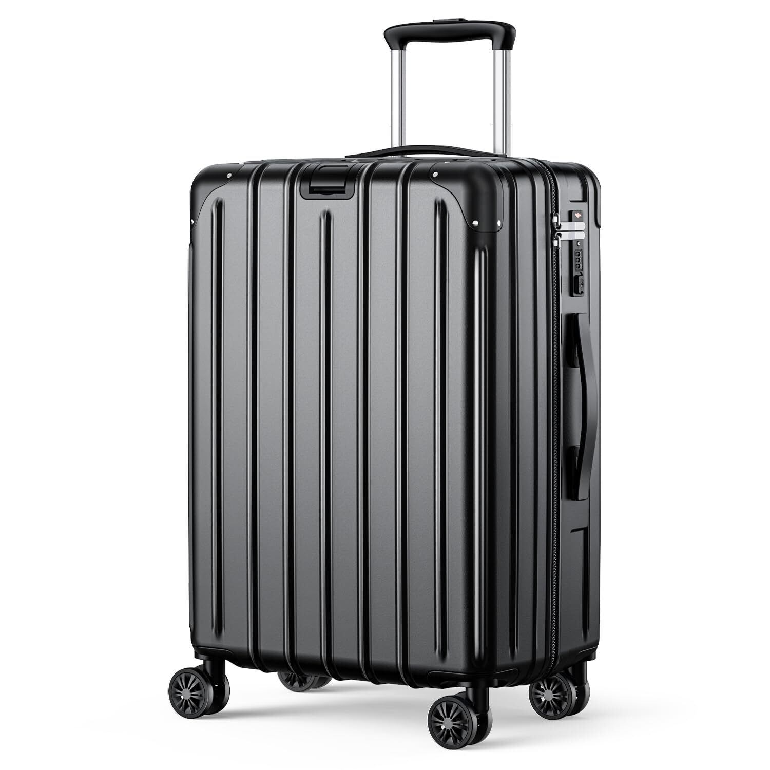 【在庫セール】[LuggMate] スーツケース 超軽量 大容量 キャリーケース 隠しフック機能 耐衝撃 静音ダブルキャスター TSAロック搭載 ファスナータイプ キャリーバッグ 旅行 ビジネス 出張 入院 (ブラック, Mサイズ(4~7泊/65L))